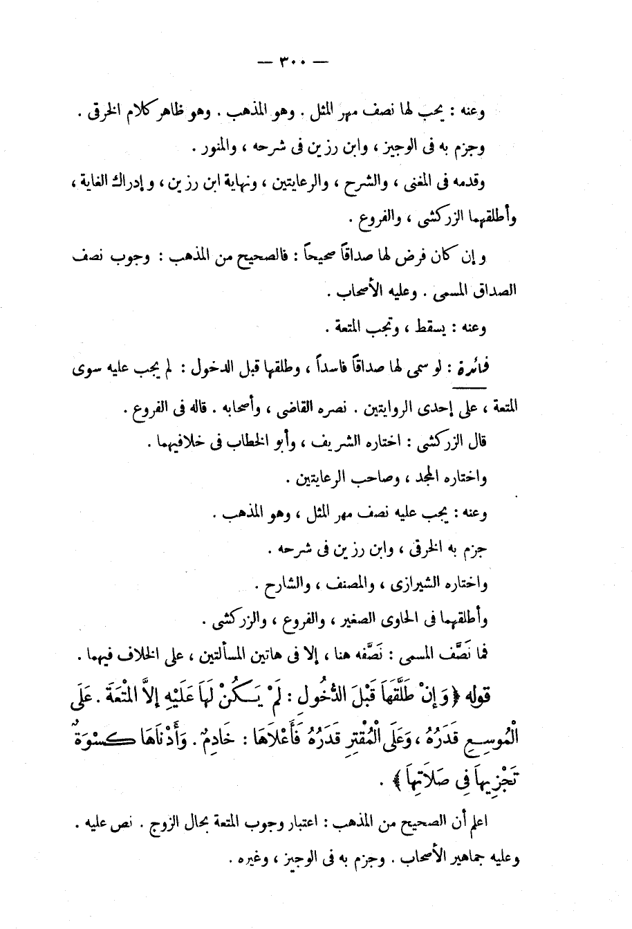 وَعَنْهُ: يَجِبُ لَهَا نِصْفُ مَهْرِ الْمِثْلِ. وَهُوَ الْمَذْهَبُ. وَهُوَ ظَاهِرُ كَلَامِ الْخِرَقِيِّ. وَجَزَمَ بِهِ فِي الْوَجِيزِ، وَابْنُ رَزِينٍ فِي شَرْحِهِ، وَالْمُنَوِّرِ. وَقَدَّمَهُ فِي الْمُغْنِي، وَالشَّرْحِ، وَالرِّعَايَتَيْنِ، وَنِهَايَةِ ابْنِ رَزِينٍ، وَإِدْرَاكِ الْغَايَةِ، وَأَطْلَقَهُمَا الزَّرْكَشِيُّ، وَالْفُرُوعُ. وَإِنْ كَانَ فَرَضَ لَهَا صَدَاقًا صَحِيحًا: فَالصَّحِيحُ مِنْ الْمَذْهَبِ: وُجُوبُ نِصْفِ الصَّدَاقِ الْمُسَمَّى. وَعَلَيْهِ الْأَصْحَابِ. وَعَنْهُ: يَسْقُطُ، وَتَجِبُ الْمُتْعَةُ.