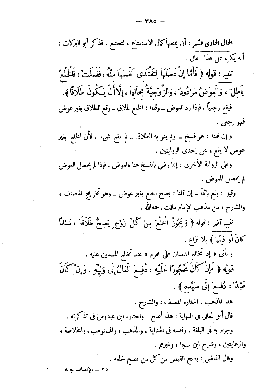 كتاب الإنصاف في معرفة الراجح من الخلاف للمرداوي (اسم الجزء: 8)