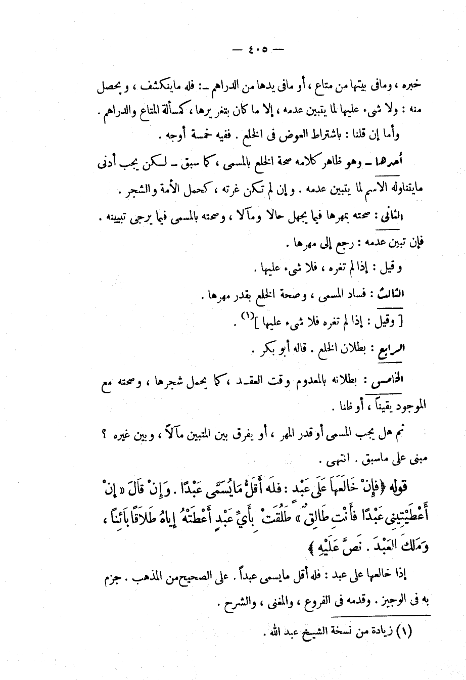إذَا خَالَعَهَا عَلَى عَبْدٍ: فَلَهُ أَقَلُّ مَا يُسَمَّى عَبْدًا. عَلَى الصَّحِيحِ مِنْ الْمَذْهَبِ. جَزَمَ بِهِ فِي الْوَجِيزِ. وَقَدَّمَهُ فِي الْفُرُوعِ، وَالْمُغْنِي، وَالشَّرْحِ.