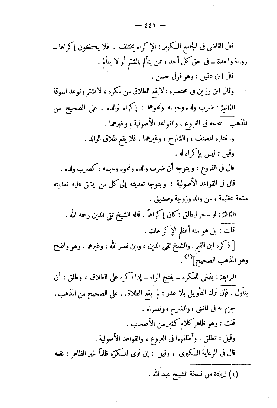 الثَّالِثَةُ: لَوْ سُحِرَ لِيُطَلِّقَ: كَانَ إكْرَاهًا. قَالَهُ الشَّيْخُ تَقِيُّ الدِّينِ - رَحِمَهُ اللَّهُ -. قُلْت: بَلْ هُوَ مِنْهُ أَعْظَمُ الْإِكْرَاهَاتِ. [ذَكَرَهُ ابْنُ الْقَيِّمِ وَالشَّيْخُ تَقِيُّ الدِّينِ، وَابْنُ نَصْرِ اللَّهِ، وَغَيْرُهُمْ وَهُوَ وَاضِحٌ وَهُوَ الْمَذْهَبُ الصَّحِيحُ]