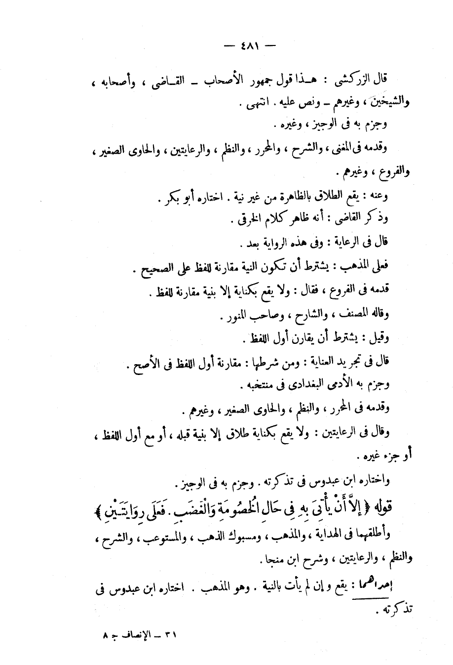 كتاب الإنصاف في معرفة الراجح من الخلاف للمرداوي (اسم الجزء: 8)