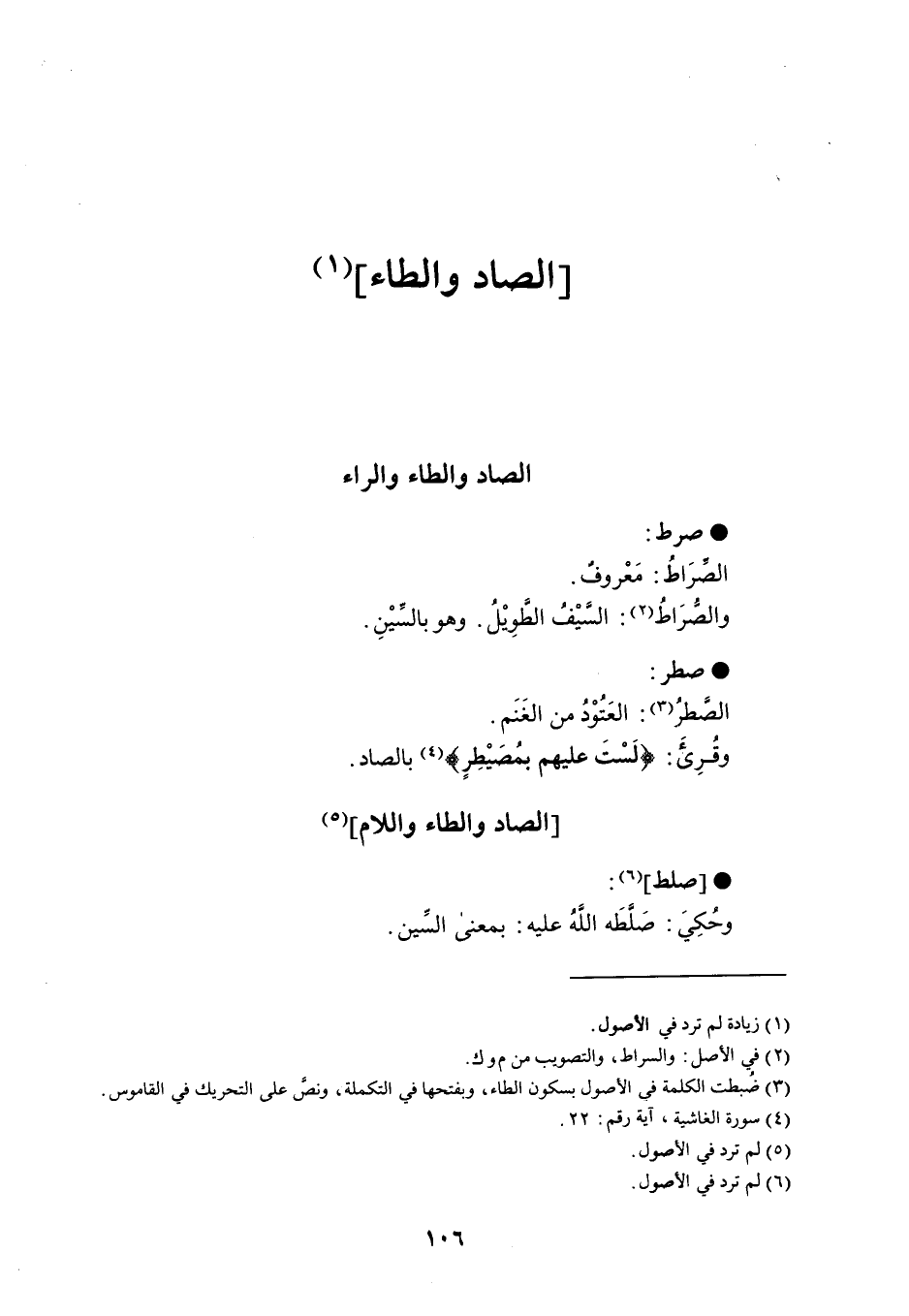 صطر الصطرُ : العَتُوْد من الغَنَم . وقُرِئ : ' لَسْتَ عليهم بمُصَيْطِرٍ ' بالصاد .