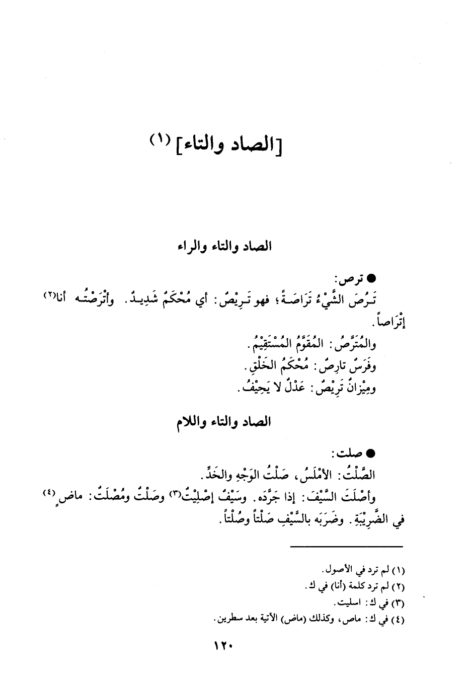 ترص تَرُصَ الشَّيْءُ تَرَاصَة ؛ فهو تَرِيْصٌ : أي مُحْكَمٌ شَدِيدٌ . وأترصته أنا إتراصاً . والمُتَرصُ : المُقَومُ المُسْتَقِيْمُ . وفَرَسٌ تارِصٌ : مُحْكَمُ الخَلْقِ . ومِيْزانٌ تَرِيْصٌ : عَدْلٌ لا يَحِيْفُ .