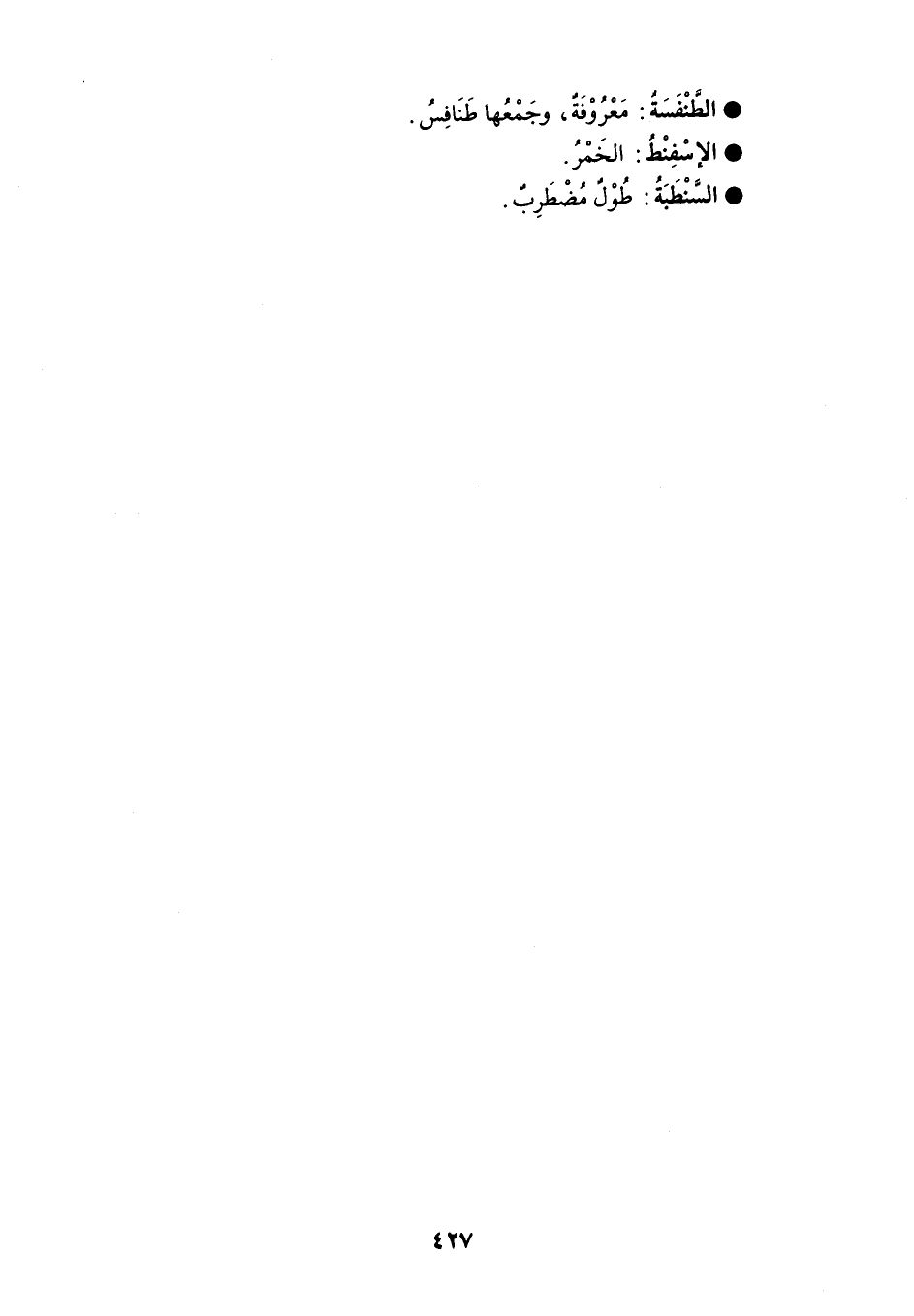 مَعْرُوْفَة ، وجَمْعُها طَنَافِسُ . الإسْفِنْطُ الخَمْرُ . السنْطَبَةُ طُوْل مُضْطَرِبٌ .