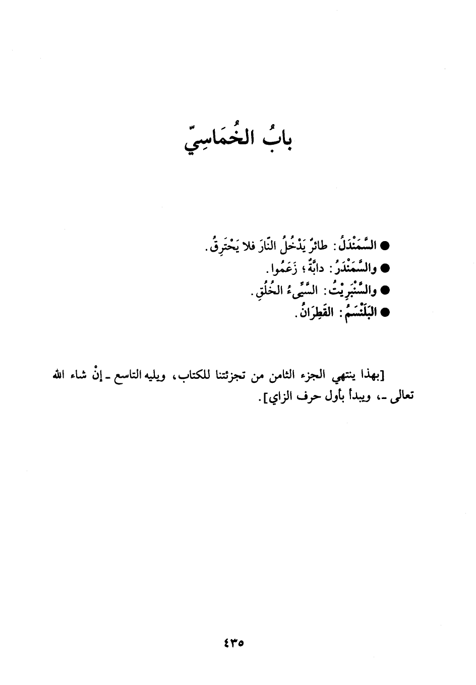 [ بهذا ينتهي الجزء الثامن من تجزئتنا للكتاب ، ويليه التاسع - إن شاء الله تعالى - ، ويبدأ بأول حرف الزاي ] .