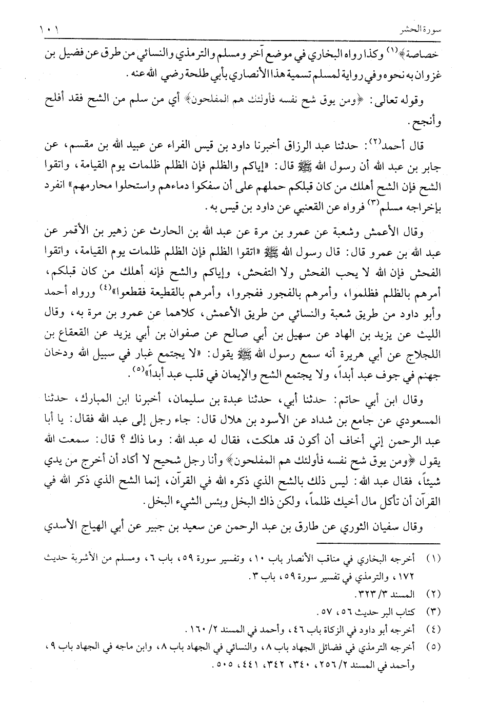 قَالَ أَحْمَدُ «2» : حَدَّثَنَا عَبْدُ الرَّزَّاقِ أَخْبَرَنَا دَاوُدُ بْنُ قَيْسٍ الْفَرَّاءُ عَنْ عُبَيْدِ اللَّهِ بْنِ مِقْسَمٍ، عَنْ جَابِرِ بْنِ عَبْدِ اللَّهِ أَنَّ رَسُولَ اللَّهِ صَلَّى اللَّهُ عَلَيْهِ وَسَلَّمَ قَالَ: «إِيَّاكُمْ وَالظُّلْمَ فَإِنَّ الظُّلْمَ ظُلُمَاتٌ يَوْمَ الْقِيَامَةِ، وَاتَّقُوا الشُحَّ فَإِنَّ الشُّحَّ أَهْلَكَ مَنْ كَانَ قَبْلَكُمْ حَمَلَهُمْ عَلَى أَنْ سَفَكُوا دِمَاءَهُمْ وَاسْتَحَلُّوا مَحَارِمَهُمْ» انْفَرَدَ بِإِخْرَاجِهِ مُسْلِمٌ «3» فَرَوَاهُ عَنِ الْقَعْنَبِيِّ عَنْ دَاوُدَ بْنِ قَيْسٍ بِهِ.