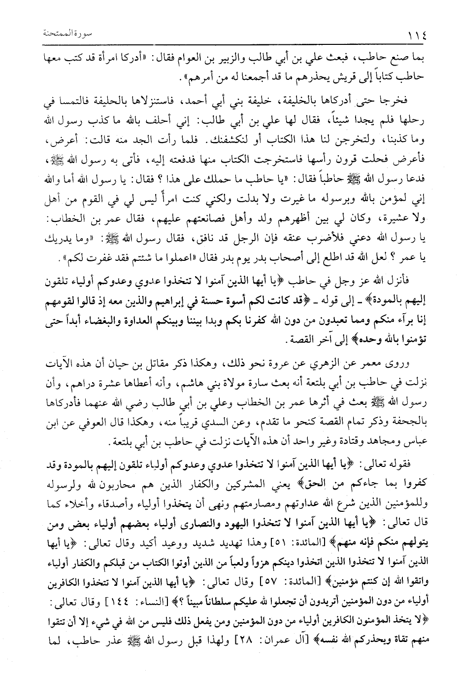 لَا يَتَّخِذِ الْمُؤْمِنُونَ الْكافِرِينَ أَوْلِياءَ مِنْ دُونِ الْمُؤْمِنِينَ وَمَنْ يَفْعَلْ ذلِكَ فَلَيْسَ مِنَ اللَّهِ فِي شَيْءٍ إِلَّا أَنْ تَتَّقُوا مِنْهُمْ تُقاةً وَيُحَذِّرُكُمُ اللَّهُ نَفْسَهُ [آلِ عِمْرَانَ: 28] وَلِهَذَا قَبْلَ رَسُولِ اللَّهِ صَلَّى اللَّهُ عَلَيْهِ وَسَلَّمَ عُذْرَ حَاطِبٍ، لما