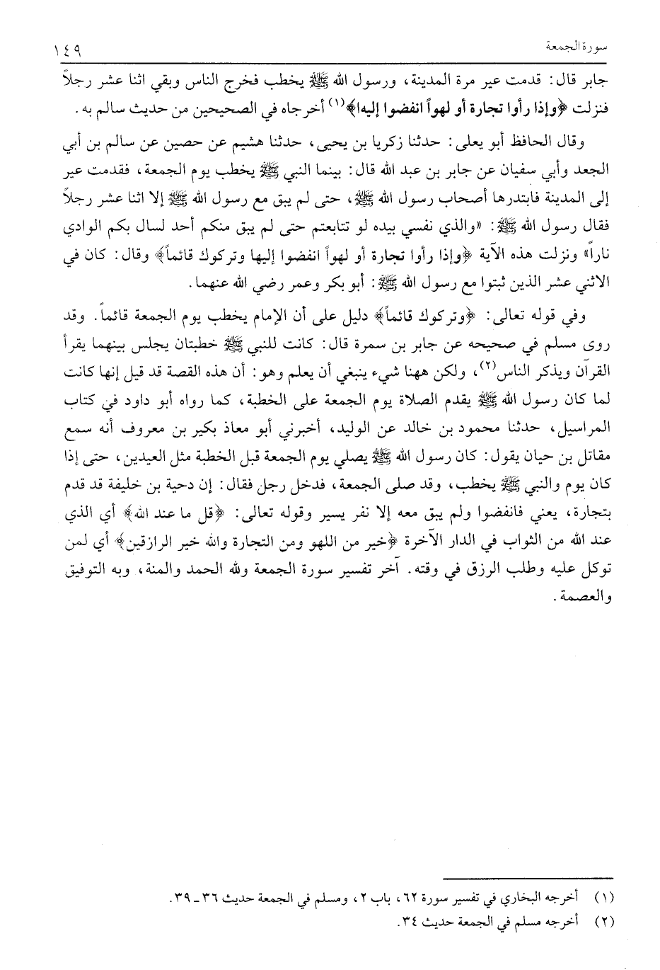 (1) أخرجه البخاري في تفسير سورة 62، باب 2، ومسلم في الجمعة حديث 36- 39.