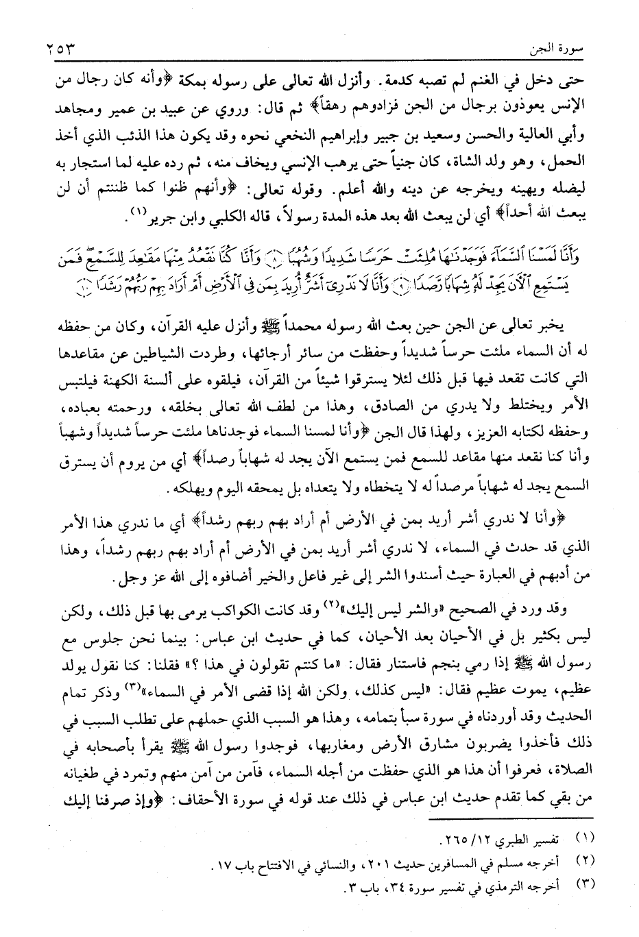 وَقَدْ وَرَدَ فِي الصَّحِيحِ «وَالشَّرُّ لَيْسَ إِلَيْكَ» «2» وَقَدْ كَانَتِ الْكَوَاكِبُ يُرْمَى بِهَا قَبْلَ ذَلِكَ، وَلَكِنْ لَيْسَ بِكَثِيرٍ بَلْ فِي الْأَحْيَانِ بَعْدَ الْأَحْيَانِ، كَمَا فِي حَدِيثِ ابْنِ عَبَّاسٍ: بَيْنَمَا نَحْنُ جُلُوسٌ مَعَ رَسُولِ اللَّهِ صَلَّى اللَّهُ عَلَيْهِ وَسَلَّمَ إذا رُمِيَ بِنَجْمٍ فَاسْتَنَارَ فَقَالَ: «مَا كُنْتُمْ تَقُولُونَ فِي هَذَا؟» فَقُلْنَا: كُنَّا نَقُولُ يُولَدُ عَظِيمٌ، يَمُوتُ عَظِيمٌ فَقَالَ: «لَيْسَ كَذَلِكَ، وَلَكِنَّ اللَّهَ إِذَا قَضَى الْأَمْرَ فِي السَّمَاءِ» «3» وَذَكَرَ تَمَامَ الْحَدِيثِ وَقَدْ أَوْرَدْنَاهُ فِي سُورَةِ سَبَأٍ بِتَمَامِهِ، وَهَذَا هُوَ السَّبَبُ الَّذِي حَمَلَهُمْ عَلَى تَطَلُّبِ السَّبَبِ فِي ذَلِكَ فَأَخَذُوا يَضْرِبُونَ مَشَارِقَ الْأَرْضِ وَمَغَارِبَهَا، فَوَجَدُوا رَسُولَ اللَّهِ صَلَّى اللَّهُ عَلَيْهِ وَسَلَّمَ يَقْرَأُ بِأَصْحَابِهِ فِي الصَّلَاةِ، فَعَرَفُوا أَنَّ هَذَا هُوَ الَّذِي حُفِظَتْ مِنْ أَجْلِهِ السَّمَاءُ، فَآمَنَ مَنْ آمَنَ مِنْهُمْ وَتَمَرَّدَ فِي طُغْيَانِهِ مَنْ بَقِيَ كَمَا تَقَدَّمَ حَدِيثُ ابْنِ عَبَّاسٍ فِي ذَلِكَ عِنْدَ قَوْلِهِ فِي سُورَةِ الْأَحْقَافِ: