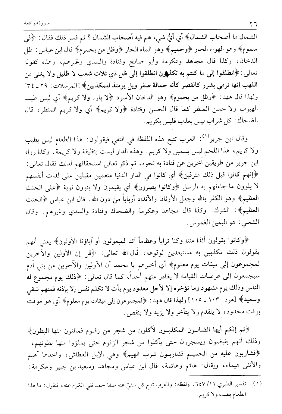 (1) تفسير الطبري 11/ 647. ولفظه: والعرب تتبع كل منفيّ عنه صفة حمد نفي الكرم عنه، فتقول: ما هذا الطعام بطيب ولا كريم.