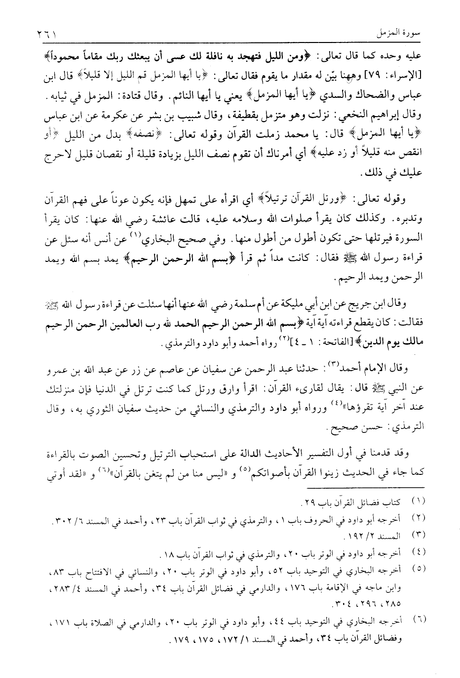 (5) أخرجه البخاري في التوحيد باب 52، وأبو داود في الوتر باب 20، والنسائي في الافتتاح باب 83، وابن ماجة في الإقامة باب 176، والدارمي في فضائل القرآن باب 34، وأحمد في المسند 4/ 283، 285، 296، 304.