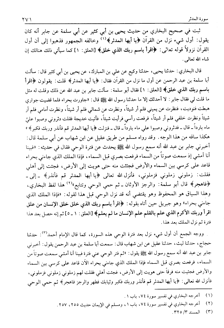(2) أخرجه البخاري في تفسير سورة 74، باب 1، ومسلم في الإيمان حديث 255، 257.