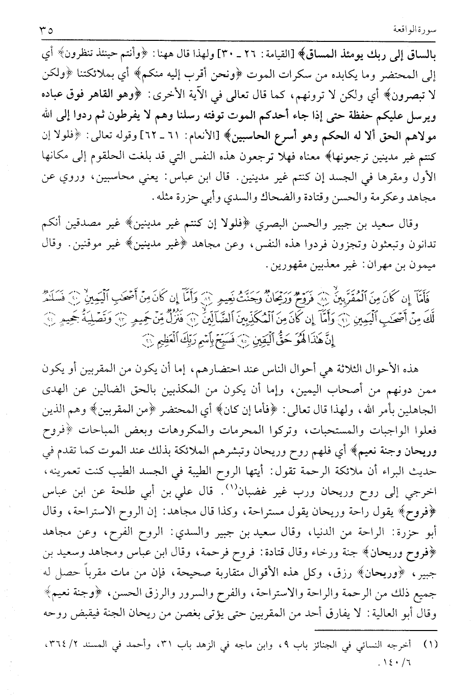 فَأَمَّا إِنْ كانَ مِنَ الْمُقَرَّبِينَ (88) فَرَوْحٌ وَرَيْحانٌ وَجَنَّةُ نَعِيمٍ (89) وَأَمَّا إِنْ كانَ مِنْ أَصْحابِ الْيَمِينِ (90) فَسَلامٌ لَكَ مِنْ أَصْحابِ الْيَمِينِ (91) وَأَمَّا إِنْ كانَ مِنَ الْمُكَذِّبِينَ الضَّالِّينَ (92)