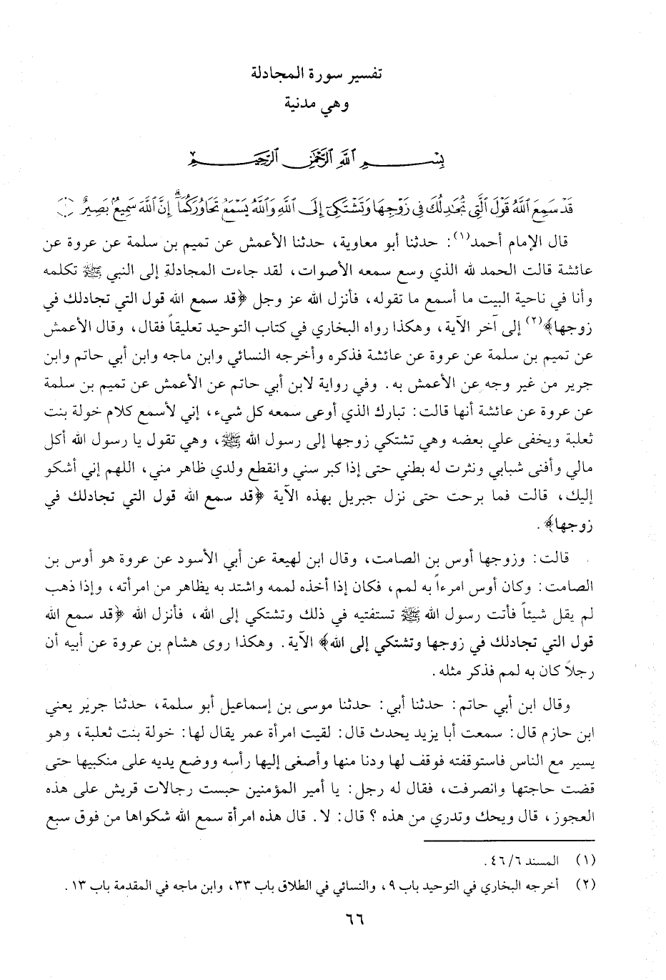 قَدْ سَمِعَ اللَّهُ قَوْلَ الَّتِي تُجادِلُكَ فِي زَوْجِها وَتَشْتَكِي إِلَى اللَّهِ وَاللَّهُ يَسْمَعُ تَحاوُرَكُما إِنَّ اللَّهَ سَمِيعٌ بَصِيرٌ (1)