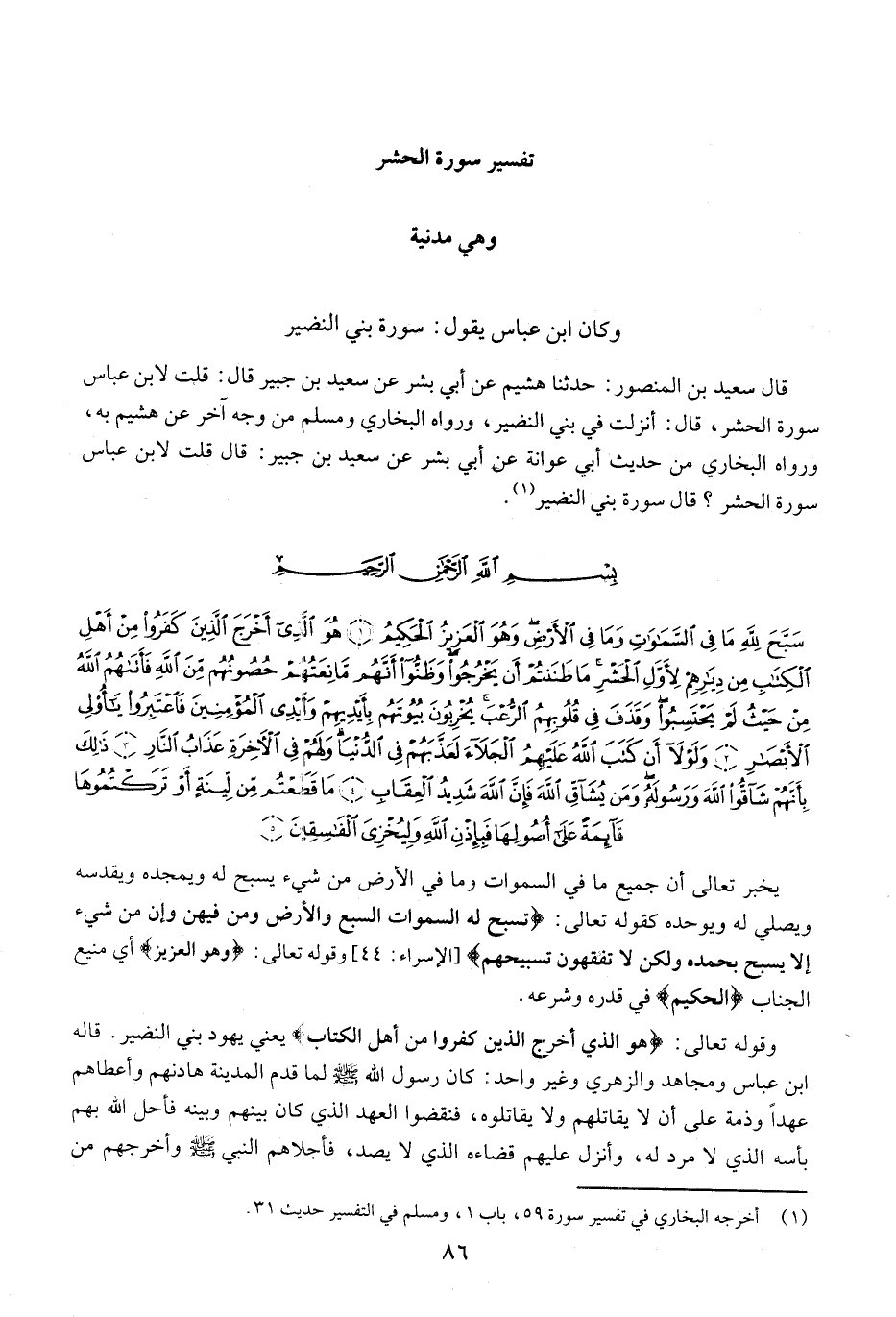 (1) أخرجه البخاري في تفسير سورة 59، باب 1، ومسلم في التفسير حديث 31.