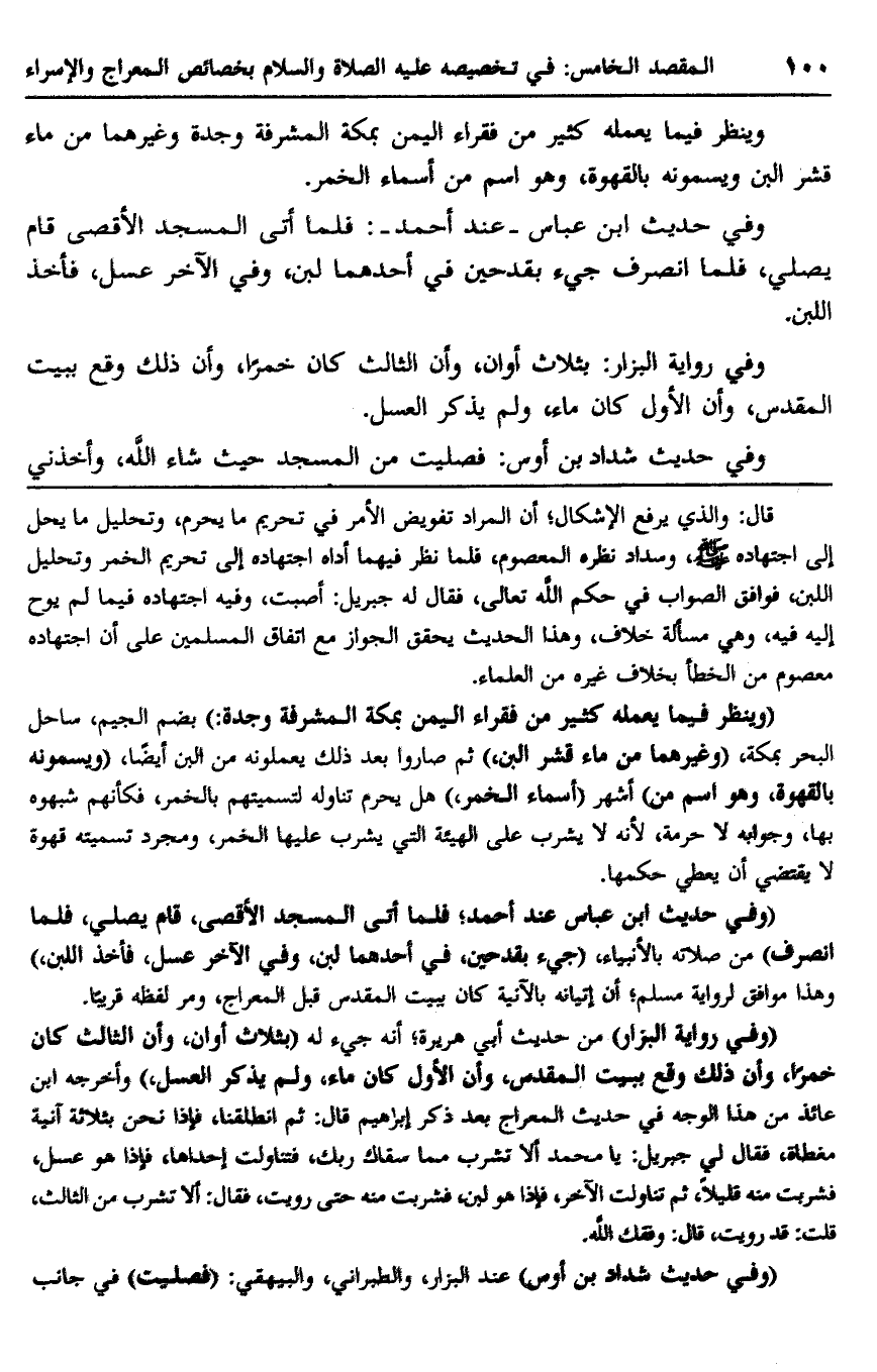 وفي حديث ابن عباس -عند أحمد-: فلما أتى المسجد الأقصى قام يصلي، فلما انصرف جيء بقدحين في أحدها لبن، وفي الآخر عسل، فأخذ اللبن.