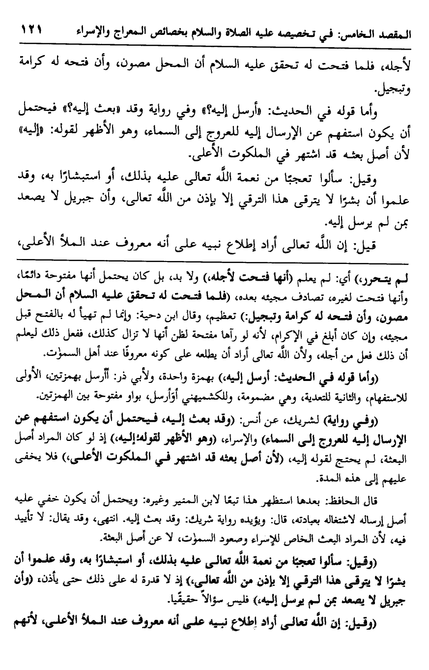 وقيل: سألوا تعجبًا من نعمة الله تعالى عليه بذلك، أو استبشارًا به، وقد علموا أن بشرًا لا يترقى هذا الترقي إلا بإذن من الله تعالى، وأن جبريل لا يصعد بمن لم يرسل إليه.