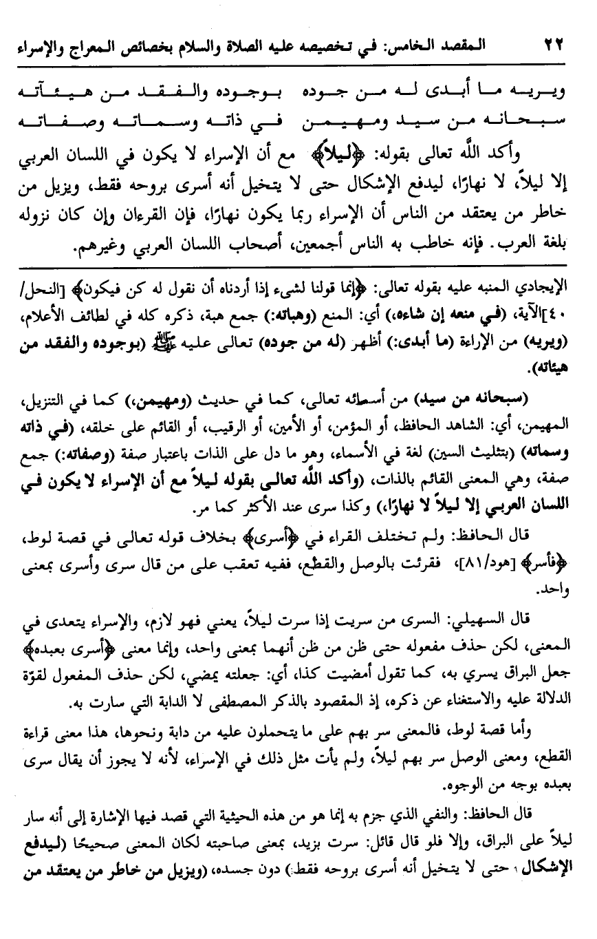 وأكد الله تعالى بقوله: {لَيْلًا} مع أن الإسراء لا يكون في اللسان العربي إلا ليلًا، لا نهارًا، "ليدفع الإشكال حتى لا يتخيل أنه أسرى بروحه فقط، ويزيل من خاطر من يعتقد من الناس أن الإسراء ربما يكون نهارًا، فإن القرآن وإن كان نزوله بلغة العرب، فإنه خاطب به الناس أجمعين، أصحاب اللسان العربي وغيرهم.