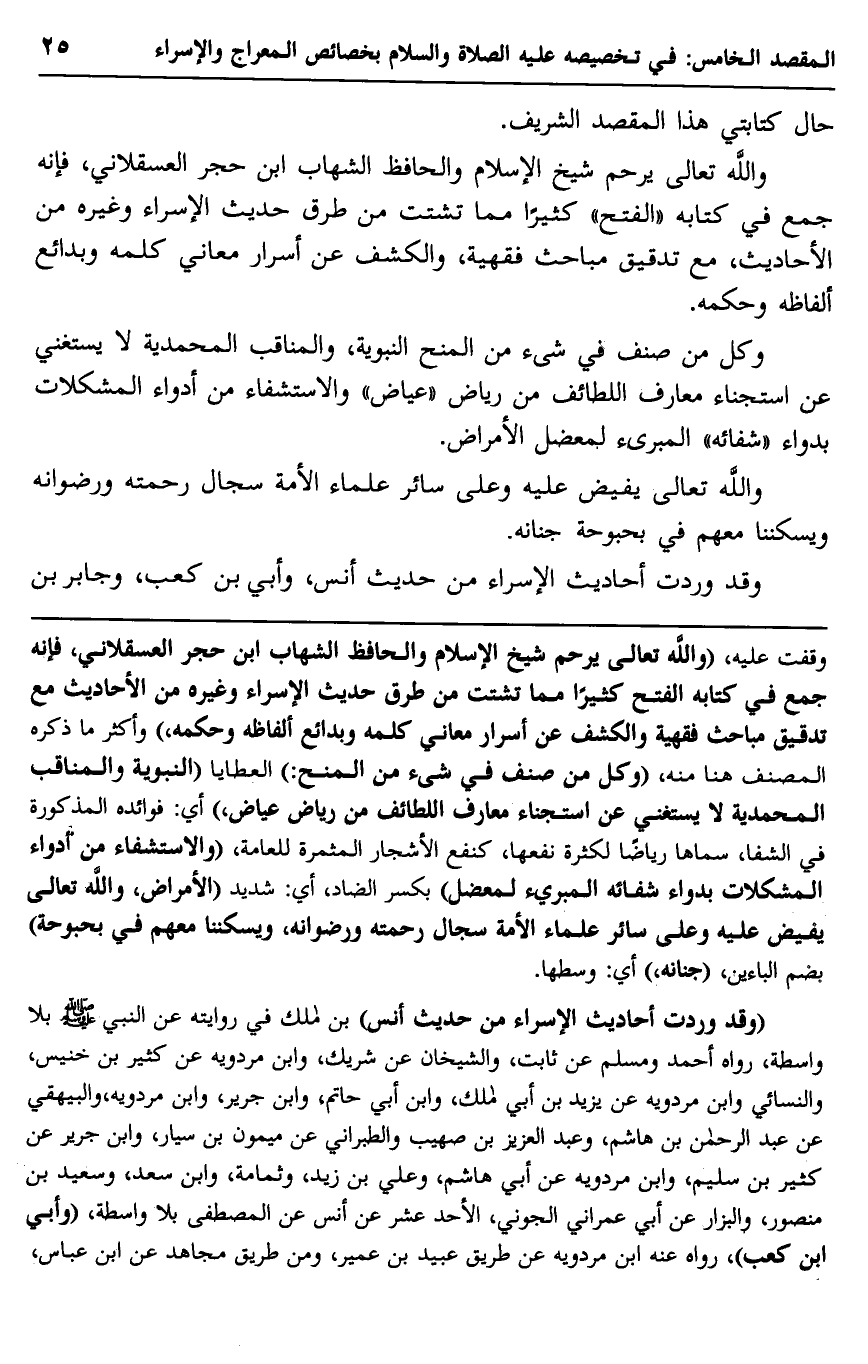 والله تعالى يرحم شيح الإسلام والحافظ الشهاب ابن حجر العسقلاني، فإنه جمع في كتابه "الفتح" كثيرًا مما تشتت من طرق حديث الإسراء وغيره من الأحاديث، مع تدقيق مباحث فقهية، والكشف عن أسرار معاني كلمه وبدائع ألفاظه وحكمه.