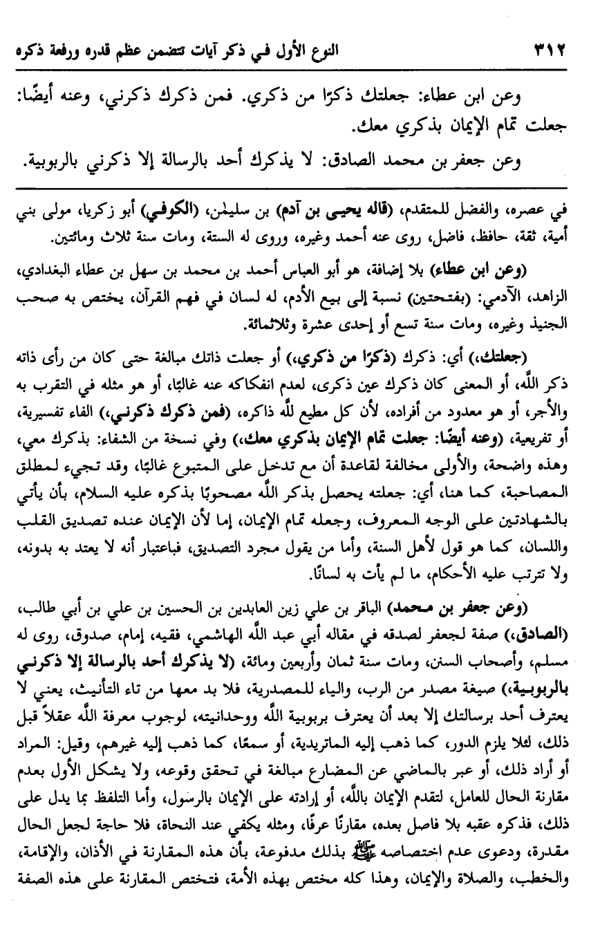 وعن جعفر بن محمد الصادق: لا يذكرك أحد بالرسالة إلا ذكرني بالربوبية.