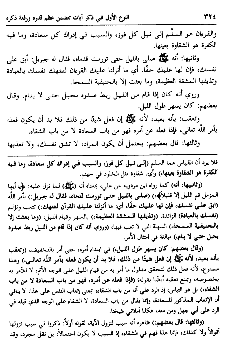 "وقال بعضهم: كان يسهر طول الليل" في ابتداء أمره، حتى أمر بالتخفيف، "وتعقب بأنه بعيد؛ لأنه صلى الله عليه سولم إن فعل شيئًا من ذلك، فلا بد أن يكون فعله بأمر الله تعالى" وهذا ممنوع؛ لأنه فعل ذلك لتحقق مدلول ما أمر به من قيام الليل على الوجه الأتم، لا للأمر به بخصوصه، ويمنع تعقبه أيضًا بقوله؛ "فإذا فعله عن أمره، هو من باب السعادة لا من باب الشفاء" بل هو التباس، إذ الرد على أنه من باب الشقاء، بمعنى إتعاب النفس على هذا، لا ينافي أن الإتعاب المذكور للسعادة، وإنما يقال من باب السعادة لا الشقاء على الوجه الذي قبله في الرد على أبي جهل ومن معه، هكذا أملاني شيخنا.