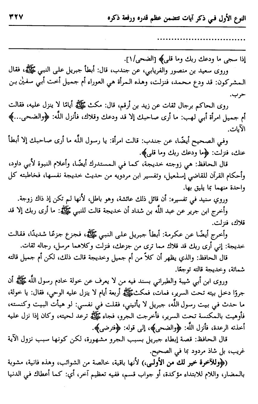 وأخرج أيضًا عن عكرمة: أبطأ جبريل على النبي صلى الله عليه وسلم، فجزع جزعًا شديدًا، فقالت خديجة: إني أرى ربك قد قلاك مما ترى من جزعك، فنزلت وكلاهما مرسل، رجاله ثقات.