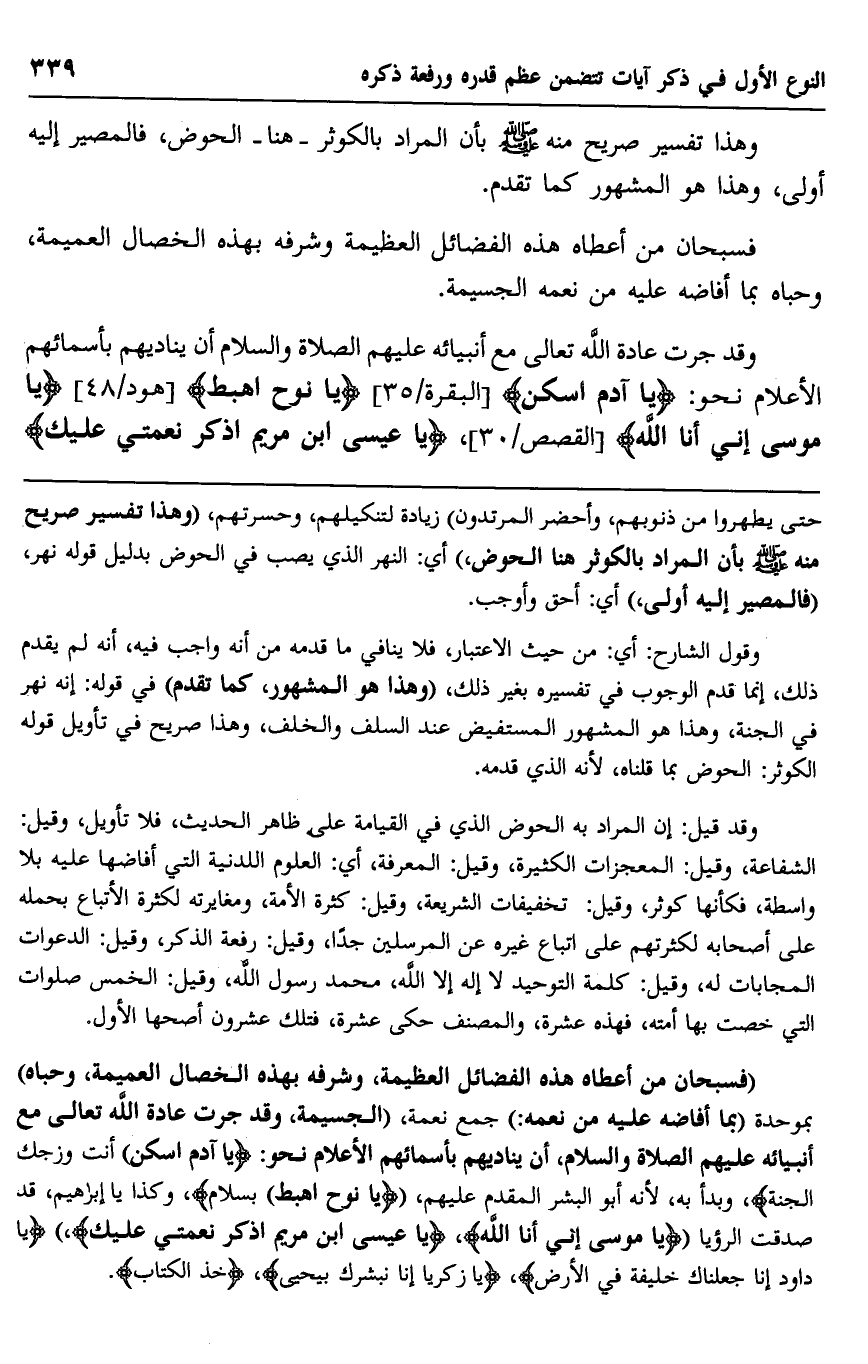 وقول الشارح: أي: من حيث الاعتبار، فلا ينافي ما قدمه من أنه واجب فيه، أنه لم يقدم ذلك، إنما قدم الوجوب في تفسيره بغير ذلك، "وهذا هو المشهور، كما تقدم" في قوله: إنه نهر في الجنة، وهذا هو المشهور المستفيض عند السلف والخلف، وهذا صريح في تأويل قوله الكوثر: الحوض بما قلناه؛ لأنه الذي قدمه.