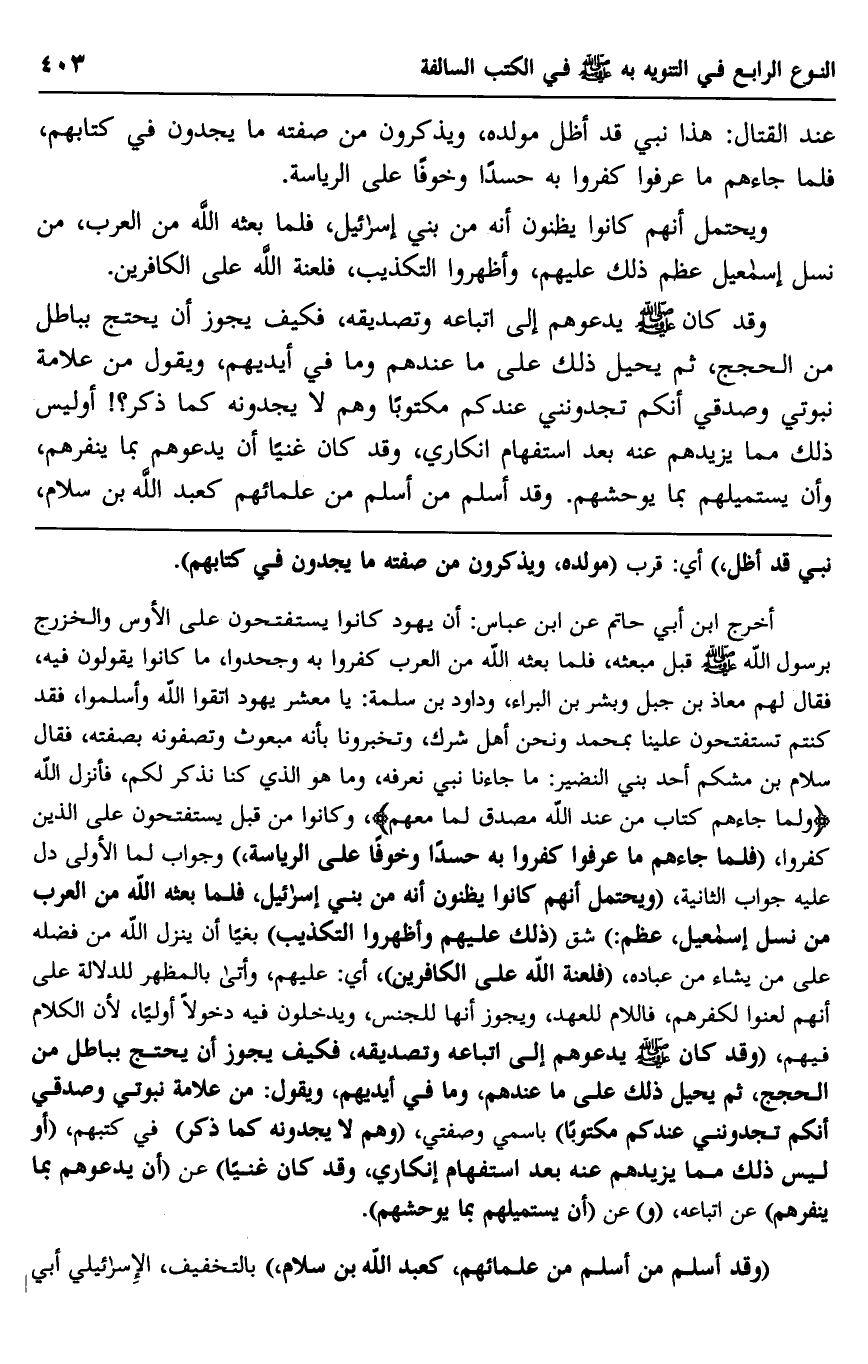 "وقد أسلم من أسلم من علمائهم، كعبد الله بن سلام" بالتخفيف، الإسرائيلي أبي