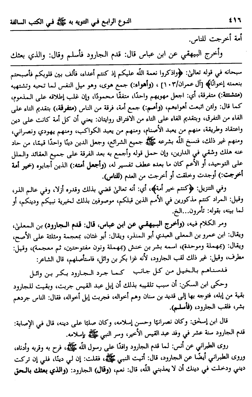 وأخرج البيهقي عن ابن عباس قال: قدم الجارود فأسلم وقال: والذي بعثك