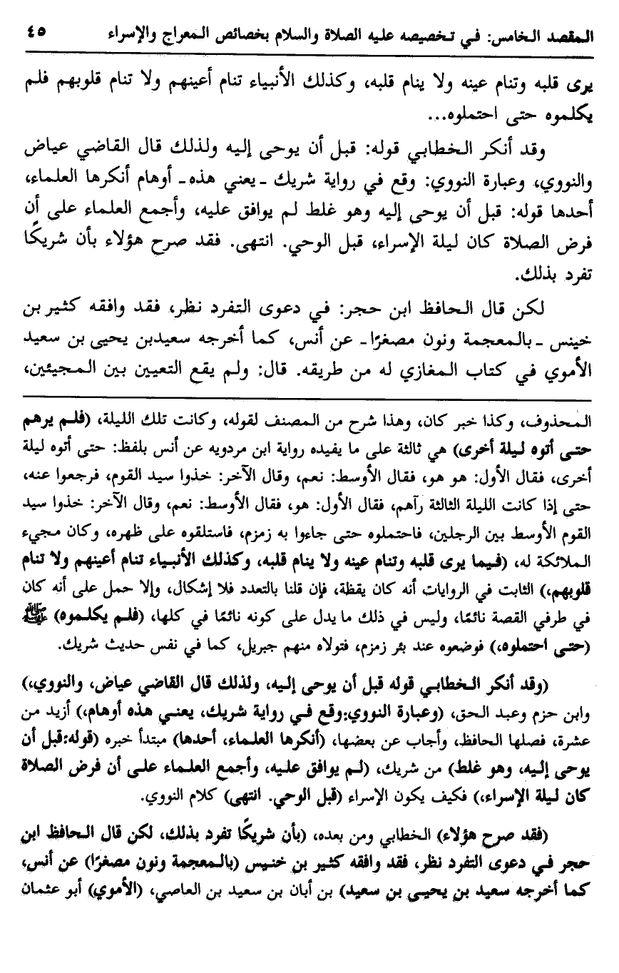 وقد أنكر الخطابي قوله: قبل أن يوحى إليه ولذلك قال القاضي عياض والنووي، وعبارة النووي: وقع في رواية شريك -يعني هذه- أوهام أنكرها العلماء، أحدها قوله: قبل أن يوحى إليه وهو غلط لم يوافق عليه، وأجمع العلماء على أن فرض الصلاة كان ليلة الإسراء، قبل الوحي. انتهى، فقد صرح هؤلاء بأن شريكًا تفرد بذلك.