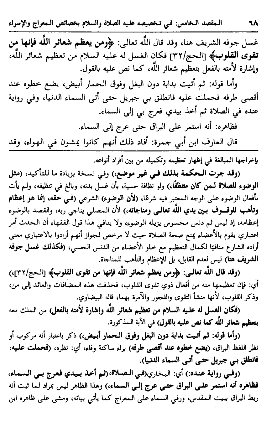 "فكان الغسل له عليه السلام من تعظيم شعائر الله وإشارة لأمته بالفعل"، من الملك معه بتعظيم شعائر الله كما نصل عليه بالقول" في الآية المذكورة.
