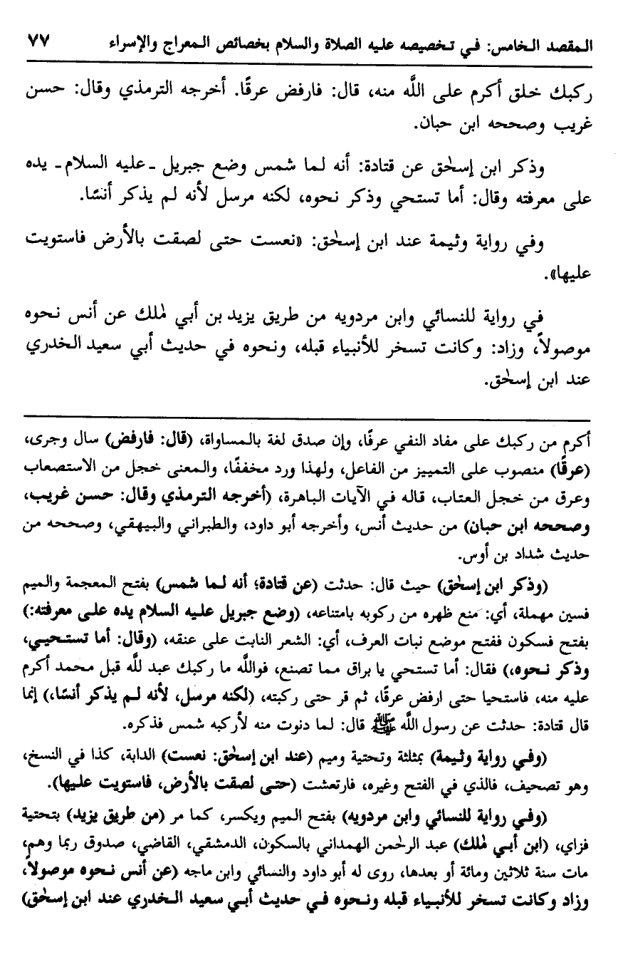 "وذكر ابن إسحاق" حيث قال: حدثت "عن قتادة؛ أنه لما شمس" بفتح المعجمة والميم فسين مهملة، أي: منع ظهره من ركوبه بامتناعه، "وضع جبريل عليه السلام يده على معرفته": بفتح فسكون ففتح موضع نبات العرف، أي: الشعر النابت على عنقه، "وقوال: أما تستحيي" وذكره نحوه"، فقال: "أما تستحيي يا براق مما تصنع، فوالله ما ركبكك عبد لله قبل محمد أكرم عليه منه، فاستحيا حتى ارفض عرقًا، ثم قر حتى ركبته"، "لكنه مرسل؛ لأنه لم يذكر أنسا"، إنما قال قتادة: حدثت عن رسول الله -صلى الله عليه وسلم- قال: لما دنوت منه لأركبه شمس فذكره.
