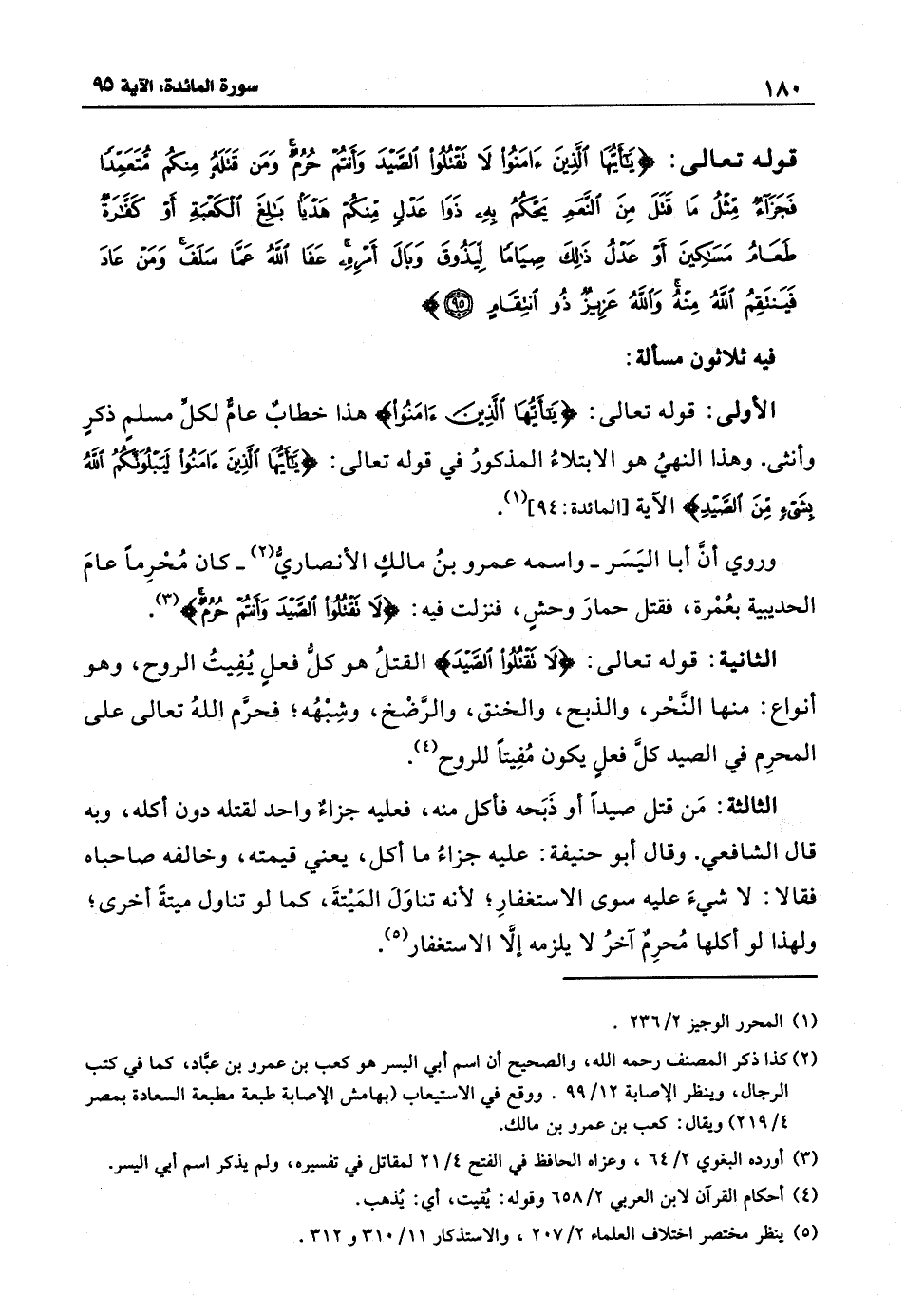 فَقَالَ رَسُولُ اللَّهِ صَلَّى اللَّهُ عَلَيْهِ وَسَلَّمَ: (اذْهَبُوا فَاقْطَعُوا عَنِّي لِسَانَهُ) فَأَعْطَوْهُ «2» حَتَّى رَضِيَ، فَكَانَ ذَلِكَ قَطْعَ لِسَانِهِ. قَالَ أَبُو عُمَرَ: وَقَدْ ذُكِرَ فِي الْمُؤَلَّفَةِ قُلُوبُهُمِ النُّضَيْرُ بْنُ الْحَارِثِ بْنِ عَلْقَمَةَ ابن كِلْدَةَ، أَخُو النَّضْرِ بْنِ الْحَارِثِ الْمَقْتُولِ بِبَدْرٍ صَبْرًا. وَذَكَرَ آخَرُونَ أَنَّهُ فِيمَنْ هَاجَرَ إِلَى الْحَبَشَةِ، فَإِنْ كَانَ مِنْهُمْ فَمُحَالٌ أَنْ يَكُونَ مِنَ الْمُؤَلَّفَةِ قُلُوبُهُمْ، وَمَنْ هَاجَرَ إِلَى أَرْضِ، الْحَبَشَةِ فَهُوَ مِنَ الْمُهَاجِرِينَ الْأَوَّلِينَ مِمَّنْ رَسَخَ الْإِيمَانُ فِي قَلْبِهِ وَقَاتَلَ دُونَهُ، وَلَيْسَ مِمَّنْ يُؤَلَّفُ عَلَيْهِ. قَالَ أَبُو عُمَرَ: وَاسْتَعْمَلَ رَسُولُ اللَّهِ صَلَّى اللَّهُ عَلَيْهِ وَسَلَّمَ مَالِكَ بْنَ عَوْفِ بْنِ سَعْدِ [بْنِ يَرْبُوعٍ «3»] النَّصْرِيَّ عَلَى مَنْ أَسْلَمَ مِنْ قَوْمِهِ مِنْ قَبَائِلِ قَيْسٍ، وأمره بمغاورة ثَقِيفٍ فَفَعَلَ وَضَيَّقَ عَلَيْهِمْ، وَحَسُنَ إِسْلَامُهُ وَإِسْلَامُ الْمُؤَلَّفَةِ قُلُوبُهُمْ، حَاشَا عُيَيْنَةَ بْنَ حِصْنٍ فَلَمْ يَزَلْ مَغْمُوزًا «4» عَلَيْهِ. وَسَائِرُ الْمُؤَلَّفَةِ مُتَفَاضِلُونَ، مِنْهُمُ الْخَيِّرُ الْفَاضِلُ الْمُجْتَمَعُ عَلَى فَضْلِهِ، كَالْحَارِثِ بْنِ هِشَامٍ، وَحَكِيمِ بْنِ حِزَامٍ، وَعِكْرِمَةَ بْنِ أَبِي جَهْلٍ، وَسُهَيْلِ بْنِ عَمْرٍو، وَمِنْهُمْ دُونُ هَؤُلَاءِ. وَقَدْ فَضَّلَ اللَّهُ النَّبِيِّينَ وَسَائِرَ عِبَادِهِ الْمُؤْمِنِينَ بَعْضَهُمْ عَلَى بَعْضٍ وَهُوَ أَعْلَمُ بِهِمْ. قَالَ مَالِكٌ: بَلَغَنِي أَنَّ حَكِيمَ بْنَ حِزَامٍ أَخْرَجَ مَا كَانَ أَعْطَاهُ النَّبِيُّ صَلَّى اللَّهُ عَلَيْهِ وَسَلَّمَ فِي الْمُؤَلَّفَةِ قُلُوبَهُمْ فَتَصَدَّقَ بِهِ بَعْدَ ذَلِكَ. قُلْتُ: حَكِيمُ بْنُ حِزَامٍ وَحُوَيْطِبُ بْنُ عَبْدِ الْعُزَّى عَاشَ كُلُّ وَاحِدٍ مِنْهُمَا مِائَةً وَعِشْرِينَ سَنَةً سِتِّينَ فِي الْإِسْلَامِ وَسِتِّينَ فِي الْجَاهِلِيَّةِ. وَسَمِعْتُ [الْإِمَامَ «5»] شَيْخَنَا الْحَافِظَ أَبَا مُحَمَّدٍ عَبْدَ الْعَظِيمِ يَقُولُ: شَخْصَانِ مِنَ الصَّحَابَةِ عَاشَا فِي الْجَاهِلِيَّةِ سِتِّينَ سَنَةً وَفِي الْإِسْلَامِ سِتِّينَ سَنَةً، وَمَاتَا بِالْمَدِينَةِ سَنَةَ أَرْبَعٍ وَخَمْسِينَ، أَحَدُهُمَا حَكِيمُ بْنُ حِزَامٍ، وَكَانَ مَوْلِدُهُ فِي جَوْفِ الْكَعْبَةِ قَبْلَ عَامِ الْفِيلِ بِثَلَاثَ عَشْرَةَ سَنَةً. وَالثَّانِي حَسَّانُ بْنُ ثَابِتِ بْنِ الْمُنْذِرِ بْنِ حَرَامٍ الْأَنْصَارِيُّ. وَذَكَرَ هَذَا أَيْضًا أَبُو عُمَرَ وَعُثْمَانُ الشَّهْرُزُورِيُّ فِي كِتَابِ مَعْرِفَةِ أَنْوَاعِ عِلْمِ الْحَدِيثِ لَهُ، وَلَمْ يَذْكُرَا غَيْرَهُمَا. وَحُوَيْطِبُ ذَكَرَهُ
