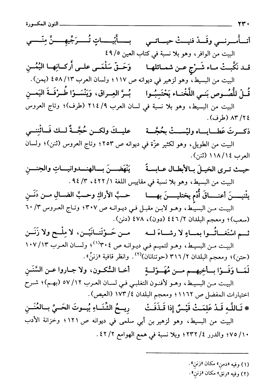 البيت من البسيط، هو لتميم في ديوانه ص 304؛ ولسان العرب 13/ 107 (حتن)؛ ومعجم البلدان 2/ 316 (حوتنانان). وانظر قافية "زننُ".