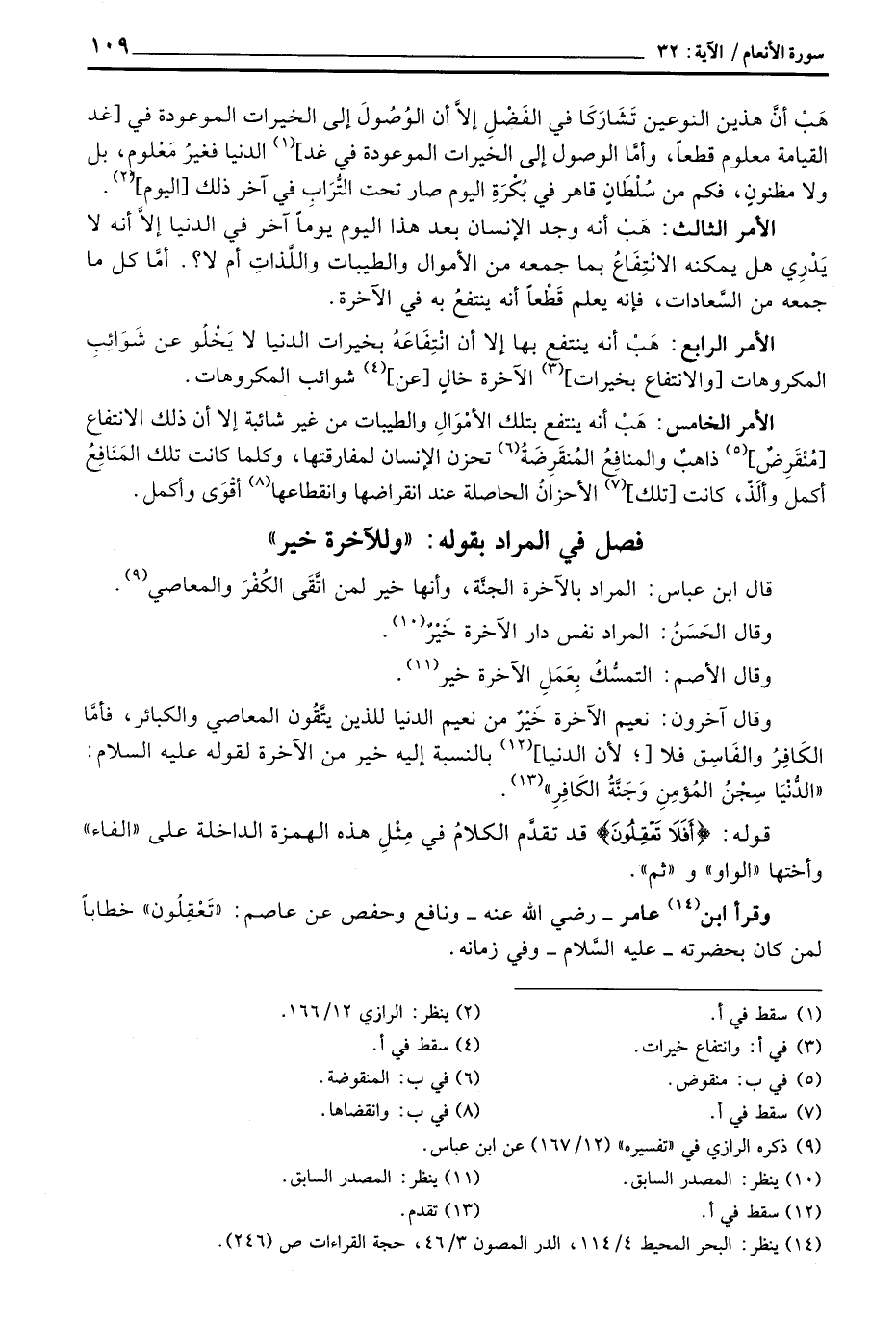 هَبْ أنَّ هذين النوعين تَشَارَكَا في الفَضْلِ إلاَّ أن الوُصُولَ إلى الخيرات الموعودة في [غد القيامة معلوم قطعاً، وأمَّا الوصول إلى الخيرات الموعودة في غد] الدنيا فغيرُ مَعْلوم، بل ولا مظنونٍ، فكم من سُلْطَانِ قاهر في بُكْرَةَ اليوم صار تحت التُّرَابِ في آخر ذلك [اليوم] .