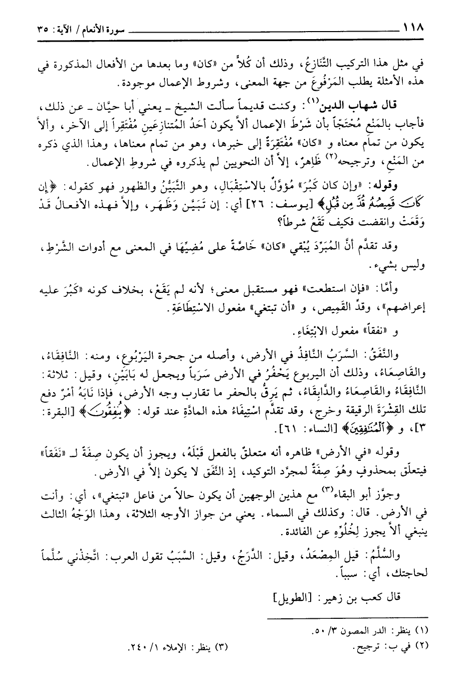 وقوله «في الأرض» ظاهرة أنه متعلقٌ بالفعل قَبْلَهُ، ويجوز أن يكون صِفَةً ل «نَفَقاً» فيتعلق بمحذوفٍ وهُوَ صِفَةٌ لمجرَّد التوكيد، إذ النَّفَق لا يكون إلاَّ في الأرض.