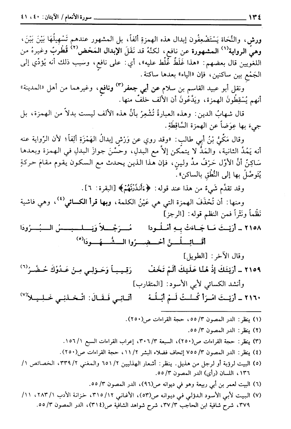 ومنها: أن تُنحْذَفَ الهمزة التي هي عَيْنُ الكلمة، وبها قرأ الكسائي، وهي فاشية نَظْماً ونَثْراً فمن النظم قوله: [الرجز]