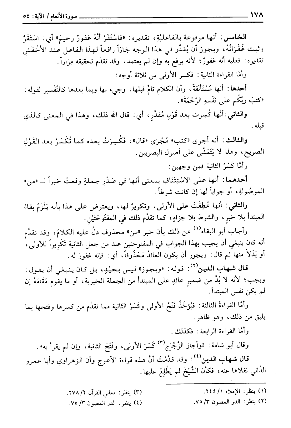 أحدها: أنها مُسْتَأنَفَةٌ، وأن الكلام تامُّ قبلها، وجيء بها وبما بعدها كالتَّفْسير لقوله: «كتبَ ربُّكُم على نَفْسهِ الرَّحْمَةَ» .