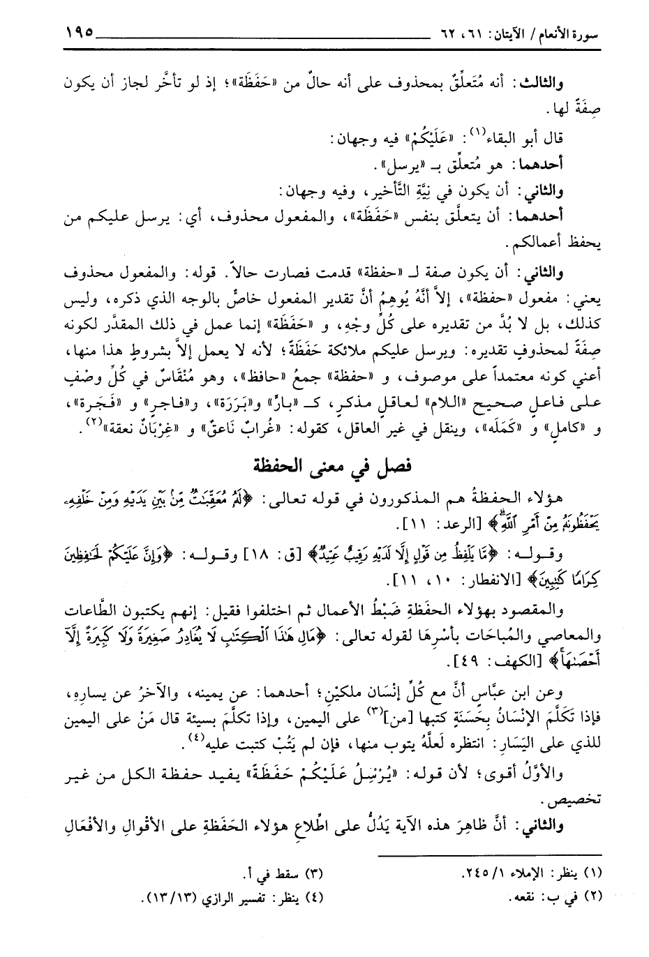 فصل في معنى الحفظة