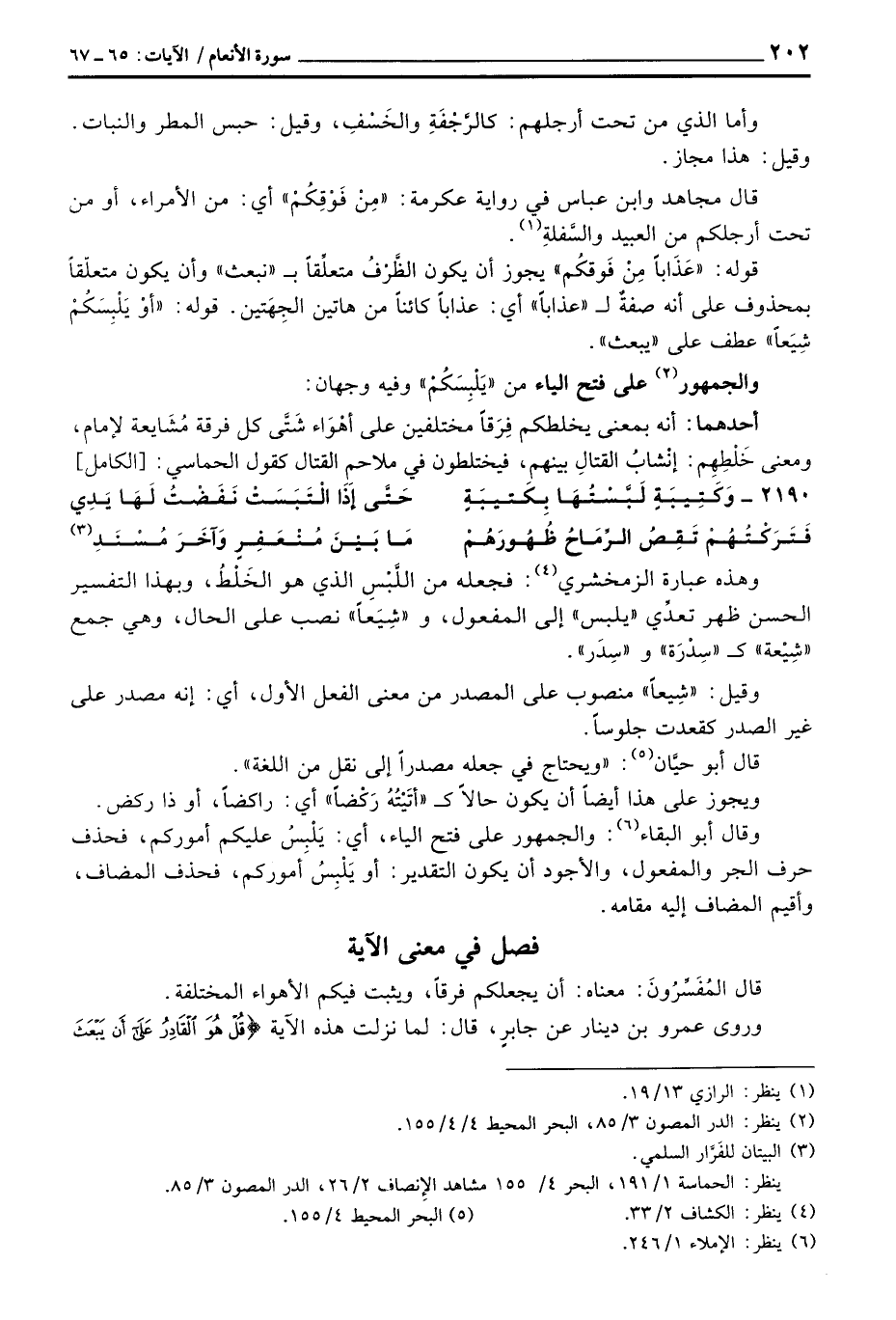 قال الُفَسِّرُونَ: معناه: أن يجعلكم فرقاً، ويثبت فيكم الأهواء المختلفة.