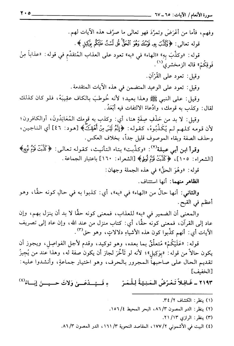 وقيل: على النبي صَلَّى اللَّهُ عَلَيْهِ وَسَلَّم َ وهذا بعيد؛ لأنه خُوطبَ بالكاف عقِيبَهُ، فلو كان كذلك لقال: وكذب به قومك، وادَّعاءُ الالتفات فيه أبْعَدُ.