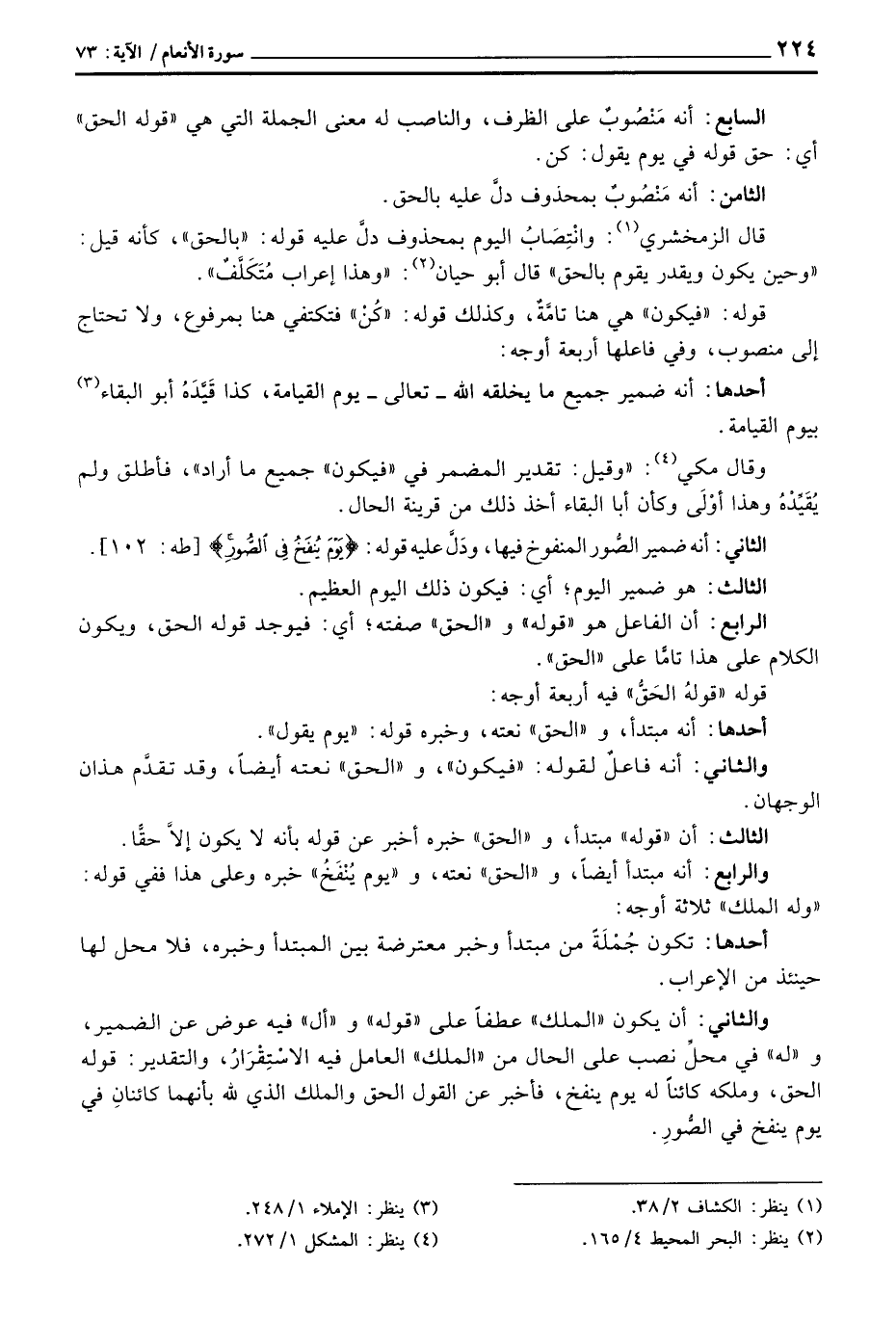 قوله «قولهُ الحَقُّ» فيه أربعة أوجه: