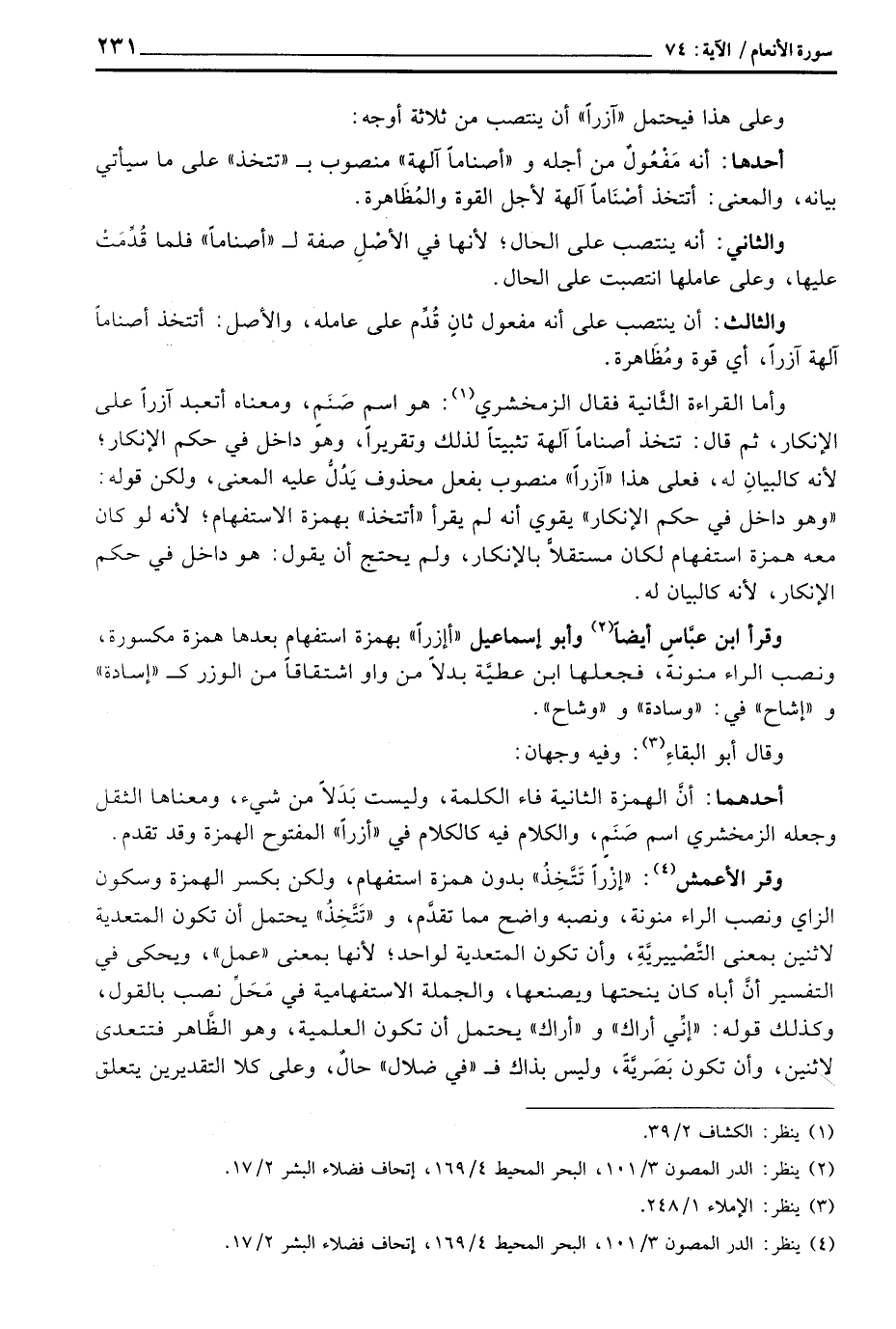 وعلى هذا فيحتمل «آزاراً» أن ينتصب من ثلاثة أوجه: