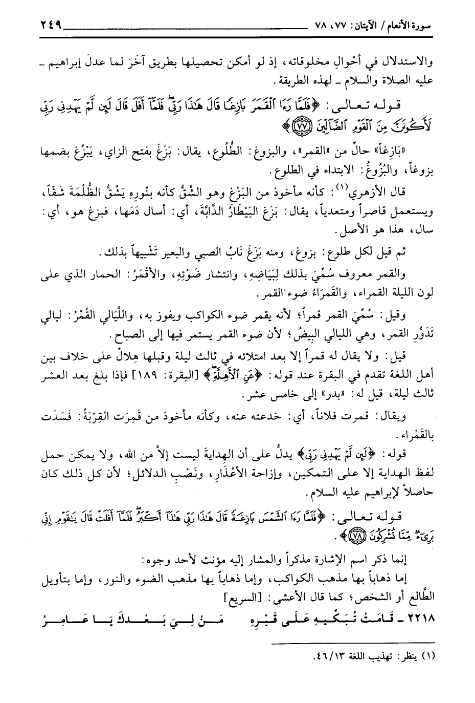 «بَازِغاً» حالٌ من «القمر» والبزوغ: الطُّلُوع، يقال: بَزَغَ بفتح الزاي: يَبْزُغ بضمها بزوغاً، والبُزُوغُ: الابتداء في الطلوع.