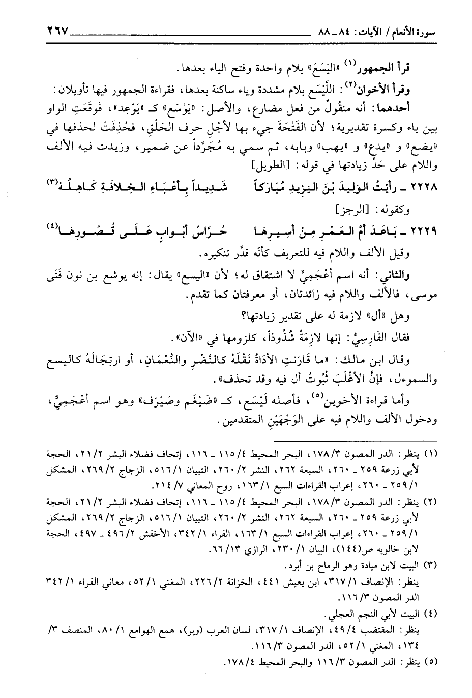 وأما قراءة الأخوين، فأصله لَيْسَع، ك «ضَيْغَم وصَيْرَف» وهو اسم أعْجَمِيُّ، ودخول الألف واللام فيه على الوَجْهَيْنِ المتقدمين.