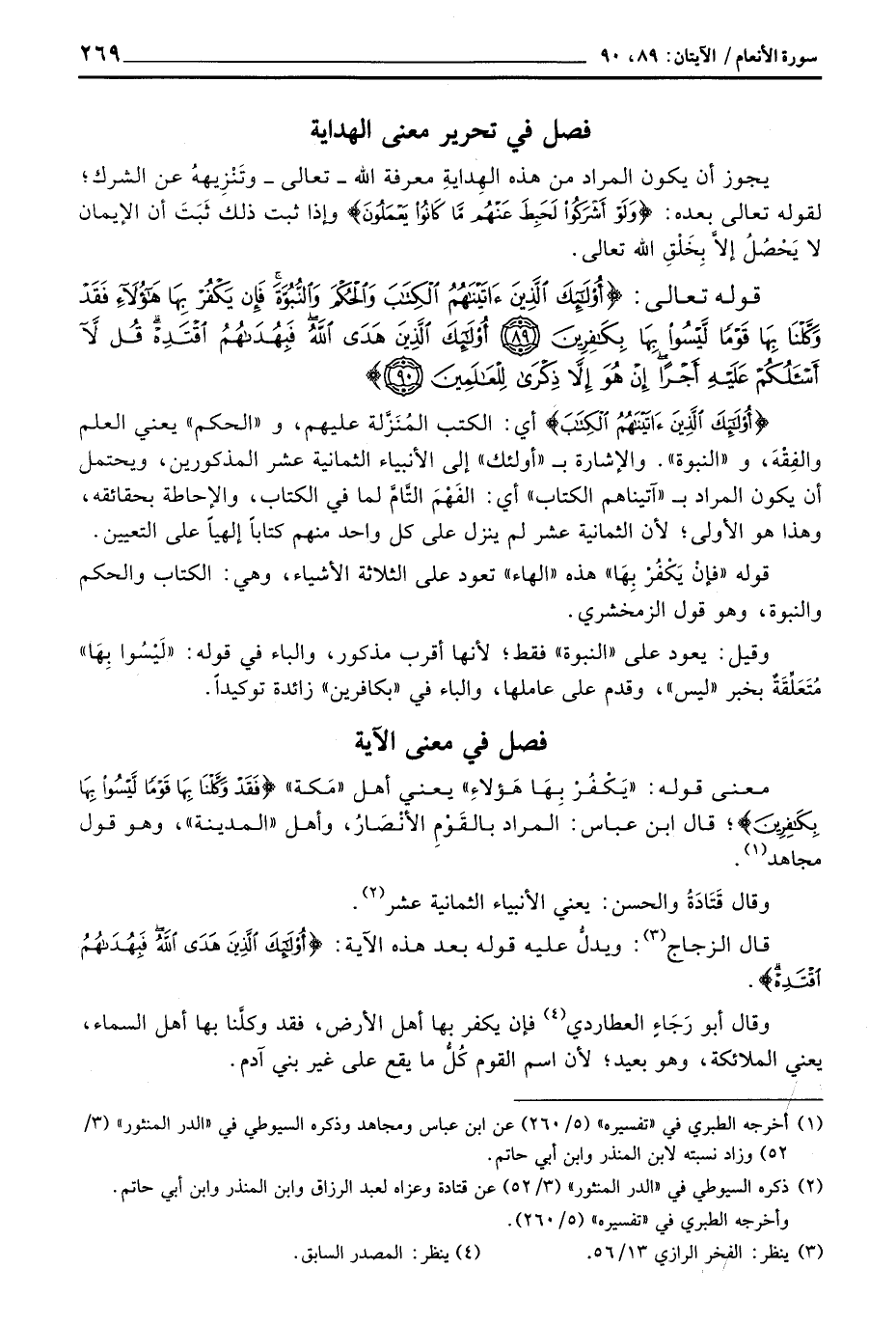 {أُوْلَئِكَ الَّذِينَ آتَيْنَاهُمُ الْكِتَابَ} أي: الكتب المُنَزَّلة عليهم، و «الحكم» يعني العلم والفِقْهَ، و «النبوة» . والإشارة ب «أولئك» إلى الأنبياء الثمانية عشر المذكورين، ويحتمل أن يكون المراد ب «آتيناهم الكتاب» أيك الفَهْمَ التَّامَّ لما في الكتاب، والإحاطة بحقائقه، وهذا هو الأولى؛ لأن الثمانية عشر لم ينزل على كل واحد منهم كتاباً إلهياً على التعيين.