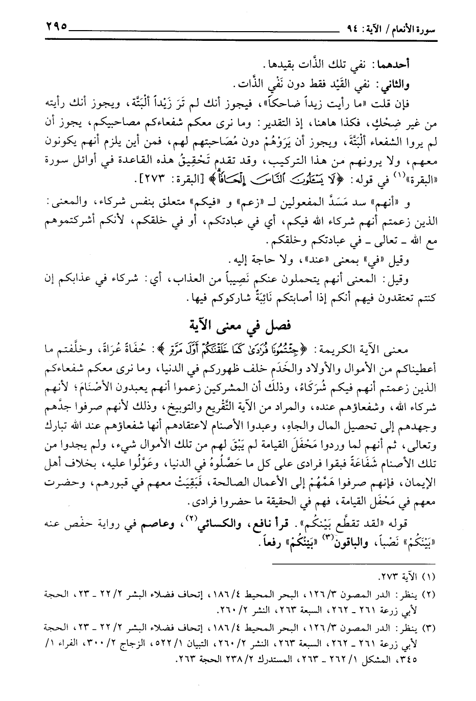 قوله» لقد تقطَّع بَيْنَكُم «قرأ نافع، والكسائي، وعاصم في رواية حفْص عنه» بَيْنَكُمْ «نَصْباً، والباقون» بَيْنُكُمْ «رفعاً.