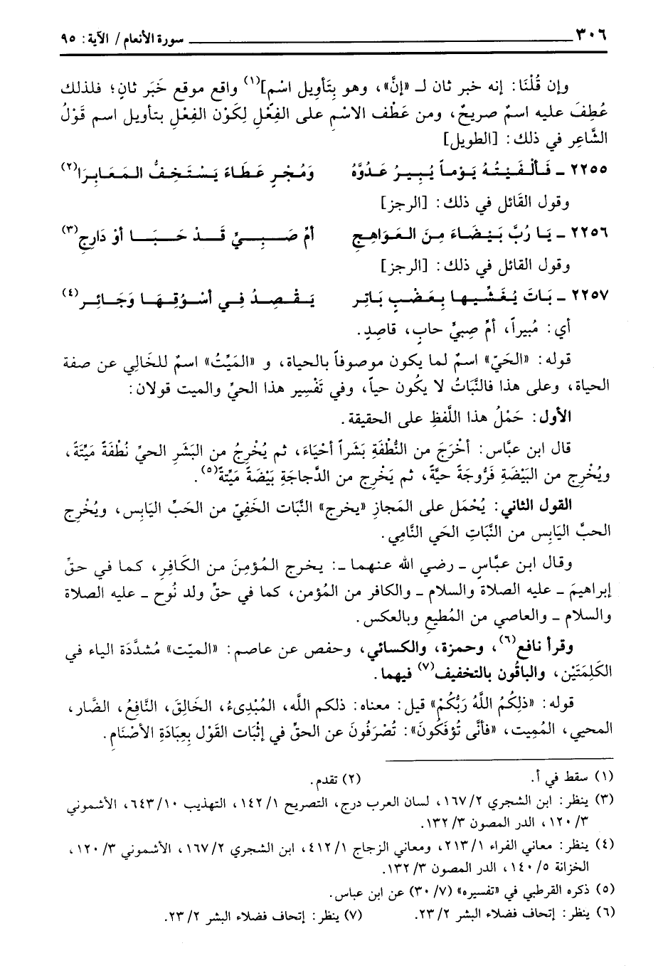 قوله: «الحَيّ» اسمٌ لما يكون موصوفاً بالحياة، و «المَيِّتُ» اسمٌ للخَالِي عن صفة الحياة، وعلى هذا فالنَّبَاتُ لا يكُون حياً، وفي تَفْسِير هذا الحيِّ والميت قولان: