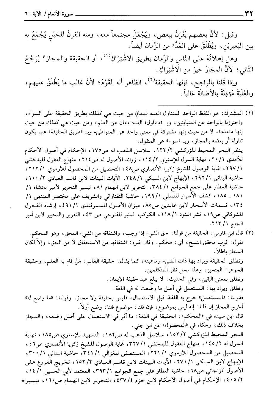 وإذا قُلنا بالراجح، فإنها الحقيقة، الظاهر أنه القَوْمُ؛ لأنَّ غالب ما يُطْلَقُ عليهم، والغَلَبَةُ مُؤذِنّةٌ الأصَالَةِ غالباً.