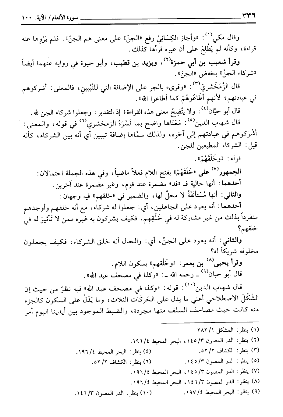 قال شهاب الدين: قوله: «وكذا في مصحف عبد الله» فيه نظرٌ من حيث إن الشَّكْلَ الاصطلاحي أعني ما يدل على الحَركَاتِ الثلاث، وما يَدُلُّ على السكون كالجزء منه كانت حيث مصاحب السلف منها مجردة، والضبط الموجودة بين أيدينا اليوم أمر